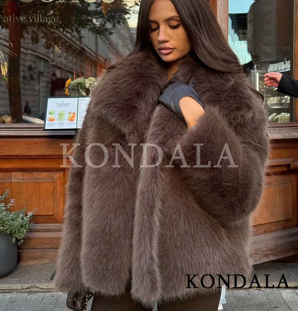 Cappotto di pelliccia marrone scuro Donna Autunno Inverno Cappotto casual caldo Risvolto Cappotto allentato in pelliccia sintetica 2025 Cappotto femminile elegante di High Street alla moda