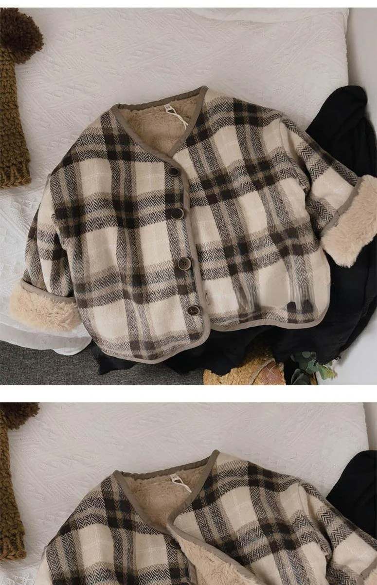Cappotto di peluche per bambini in lana scozzese versione coreana autunno e inverno nuovi cappotti per ragazzi e ragazze vestiti imbottiti in cotone per bambini
