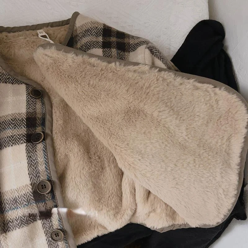Cappotto di peluche per bambini in lana scozzese versione coreana autunno e inverno nuovi cappotti per ragazzi e ragazze vestiti imbottiti in cotone per bambini