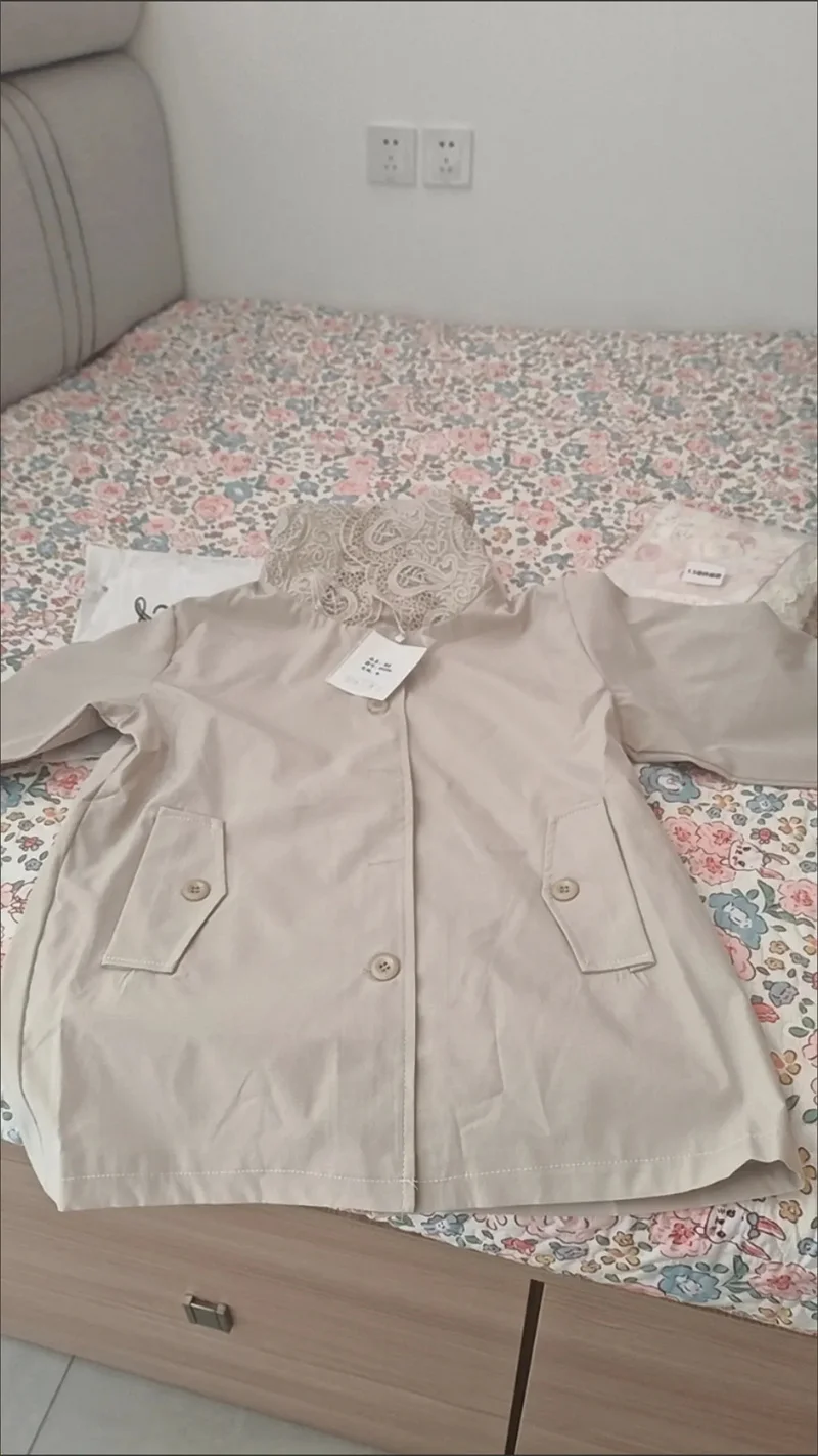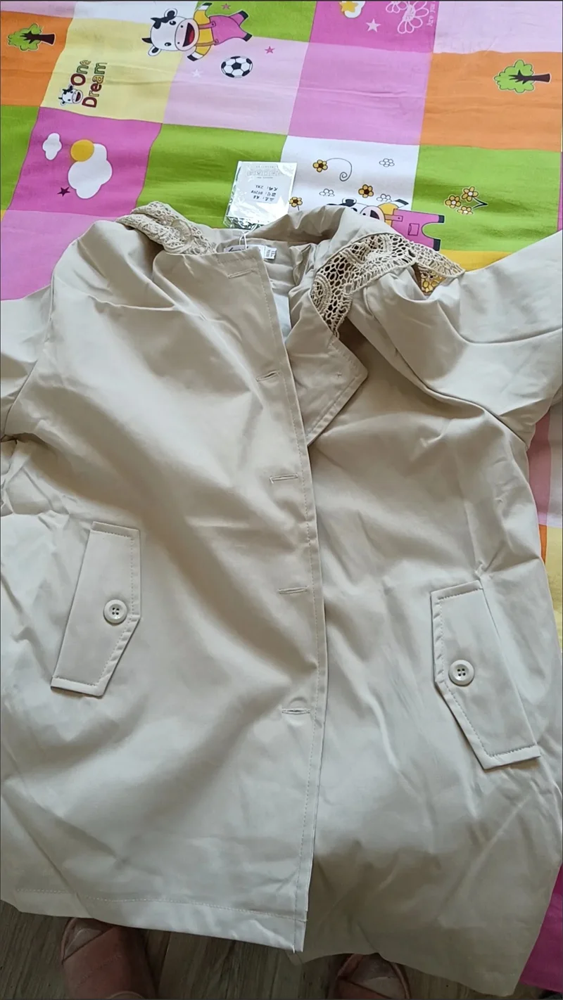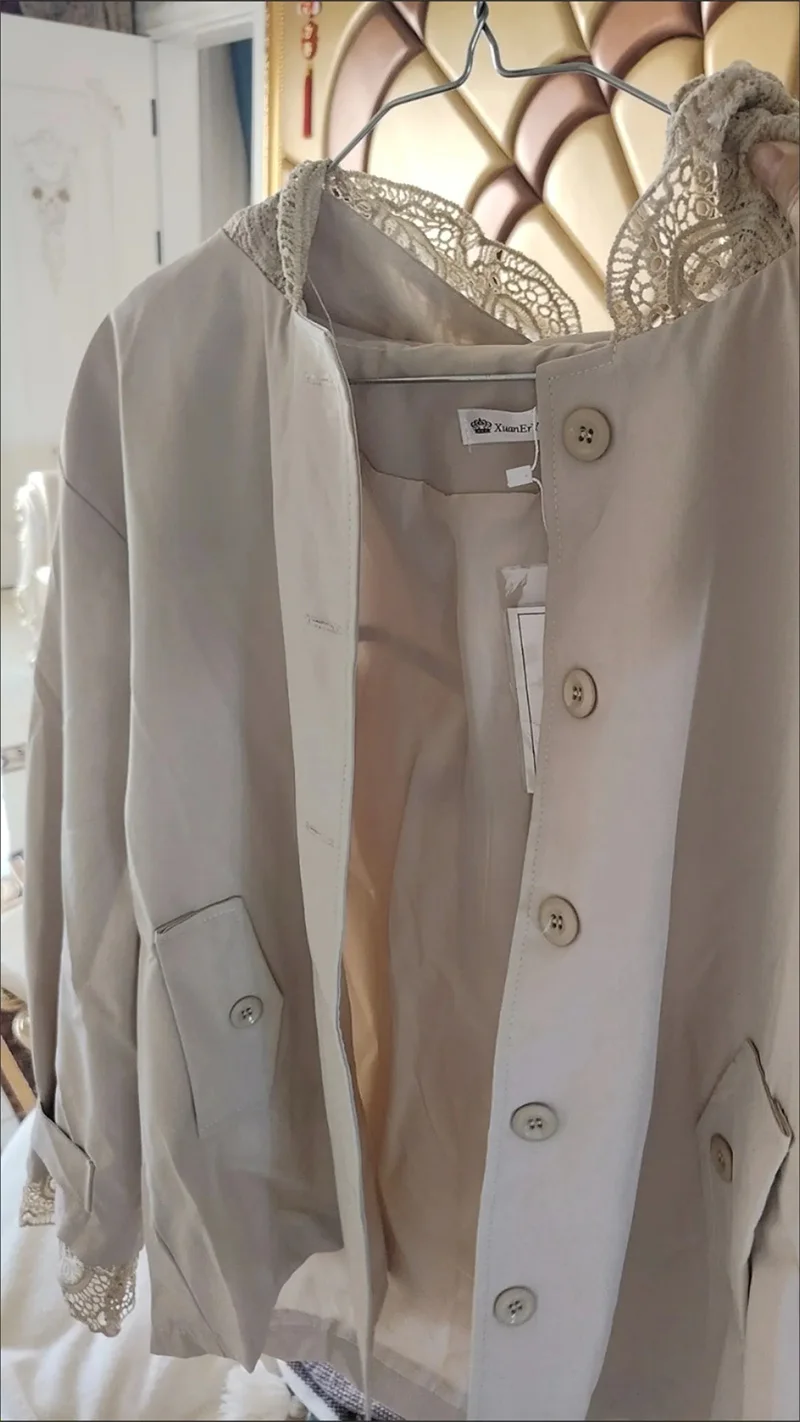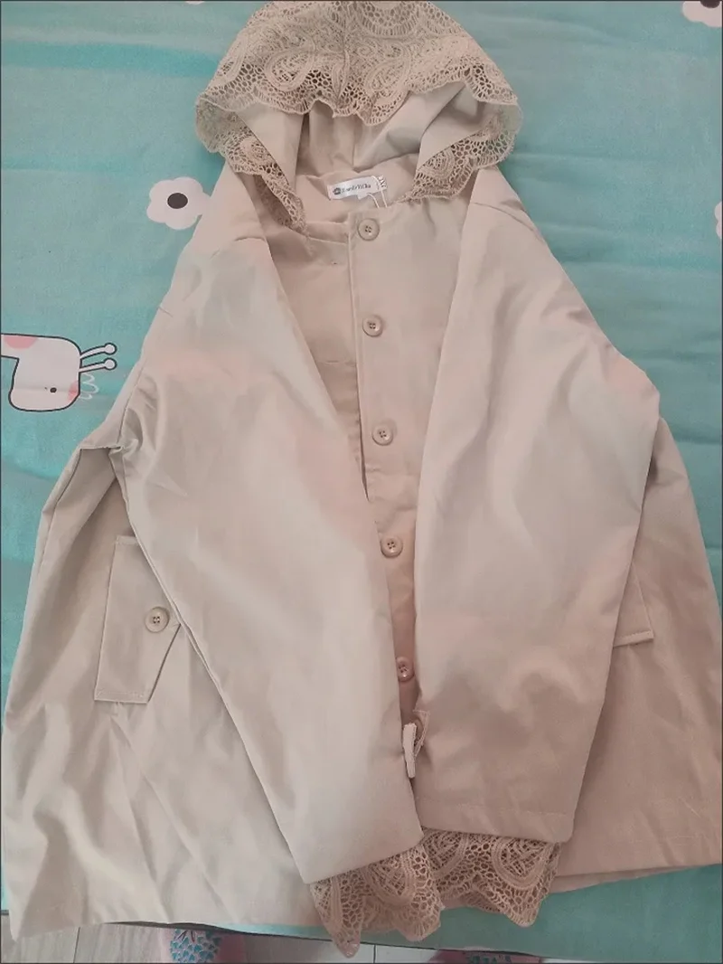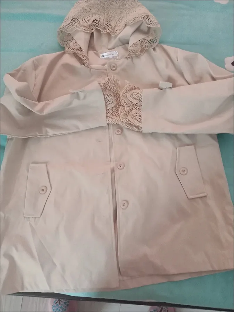 Cappotto giacca a vento europeo da donna Primavera Autunno 2025Nuova giacca temperamento Cuciture con cappuccio in pizzo Capispalla Moda donna Overwear