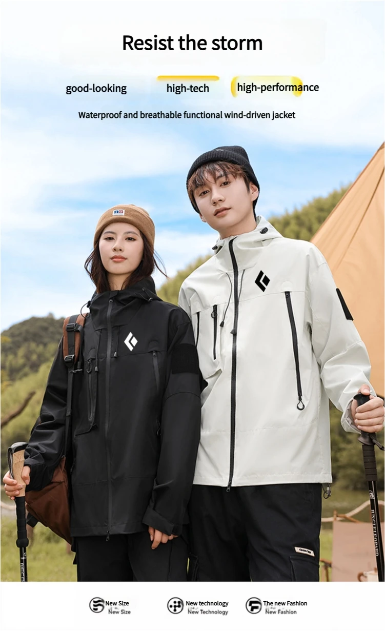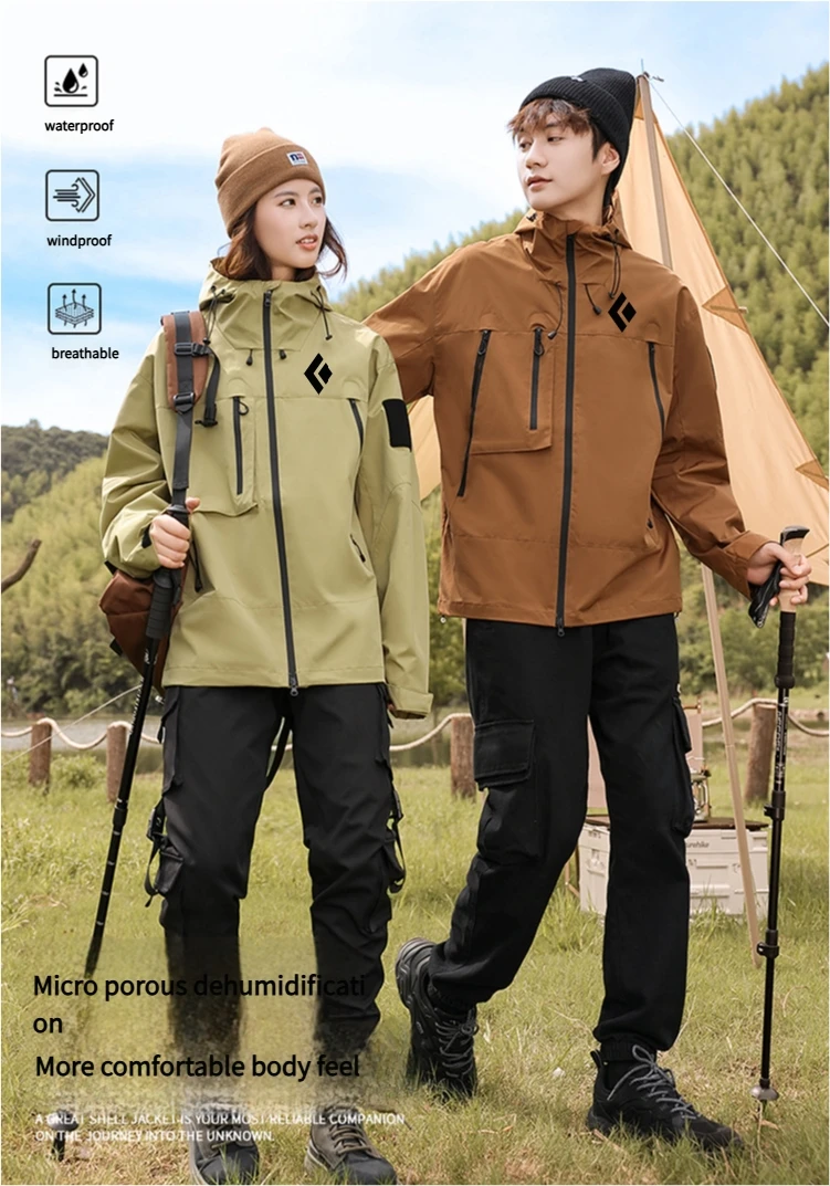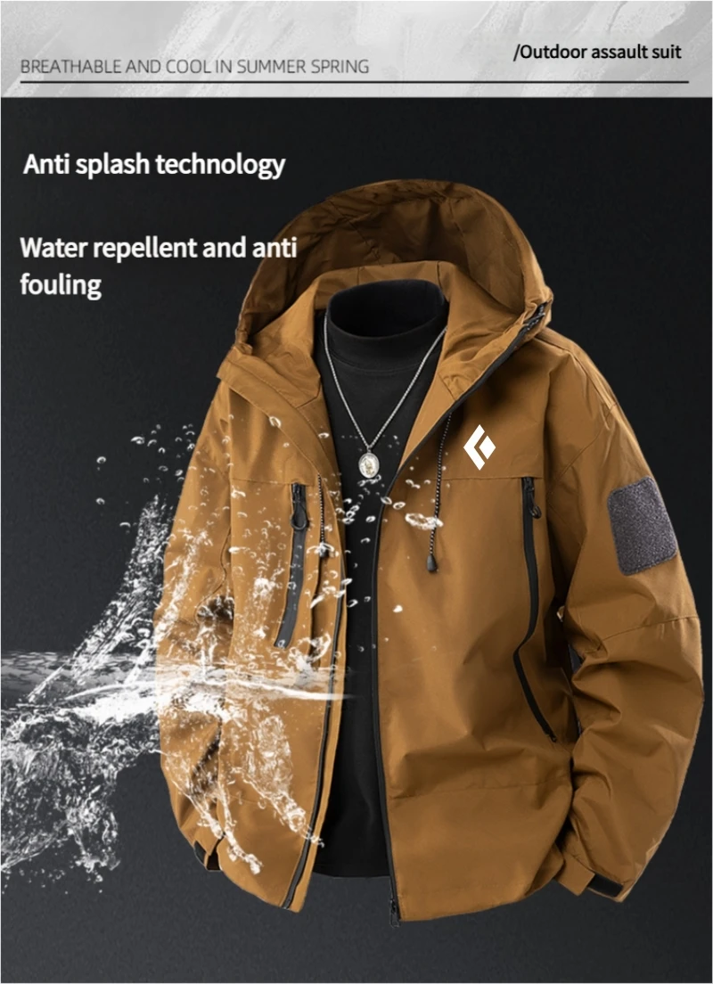 Cappotto impermeabile e antivento da uomo e da donna. Cappotto con cappuccio tattico di lusso per escursioni e campeggio all’aperto. Leggero e traspirante