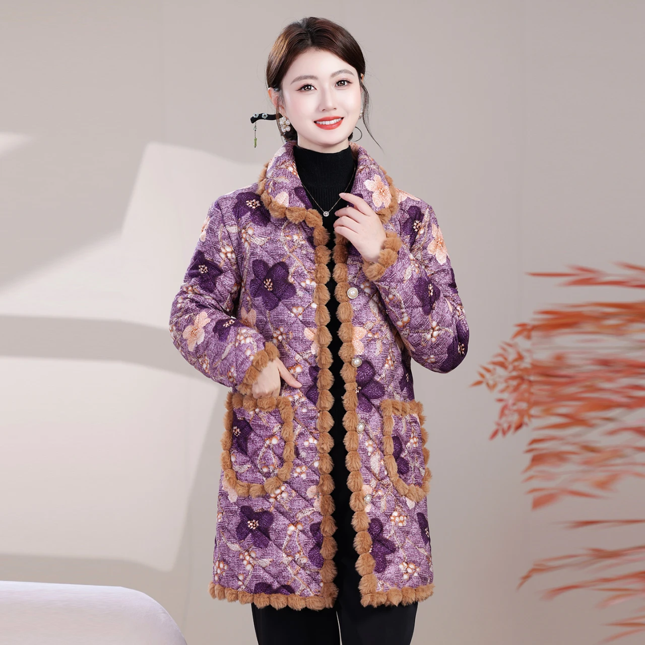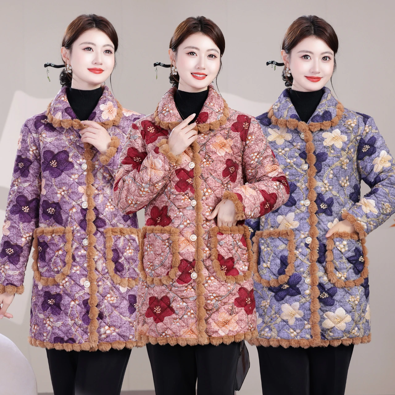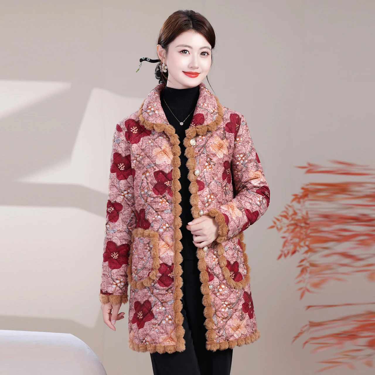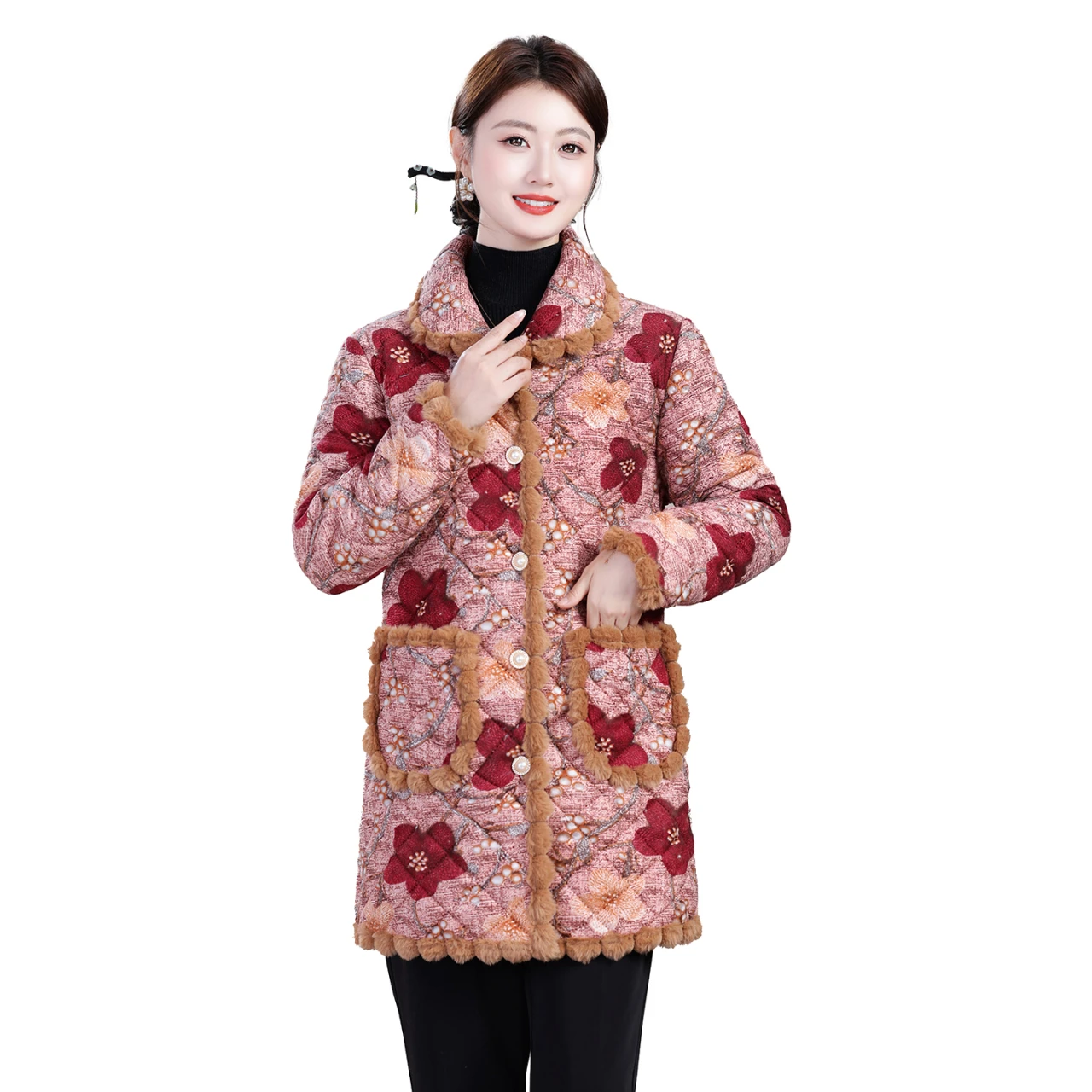 Cappotto in cotone vintage Giacca imbottita ispessita Capispalla da donna invernale nuovo stile foderato in pile taglie forti