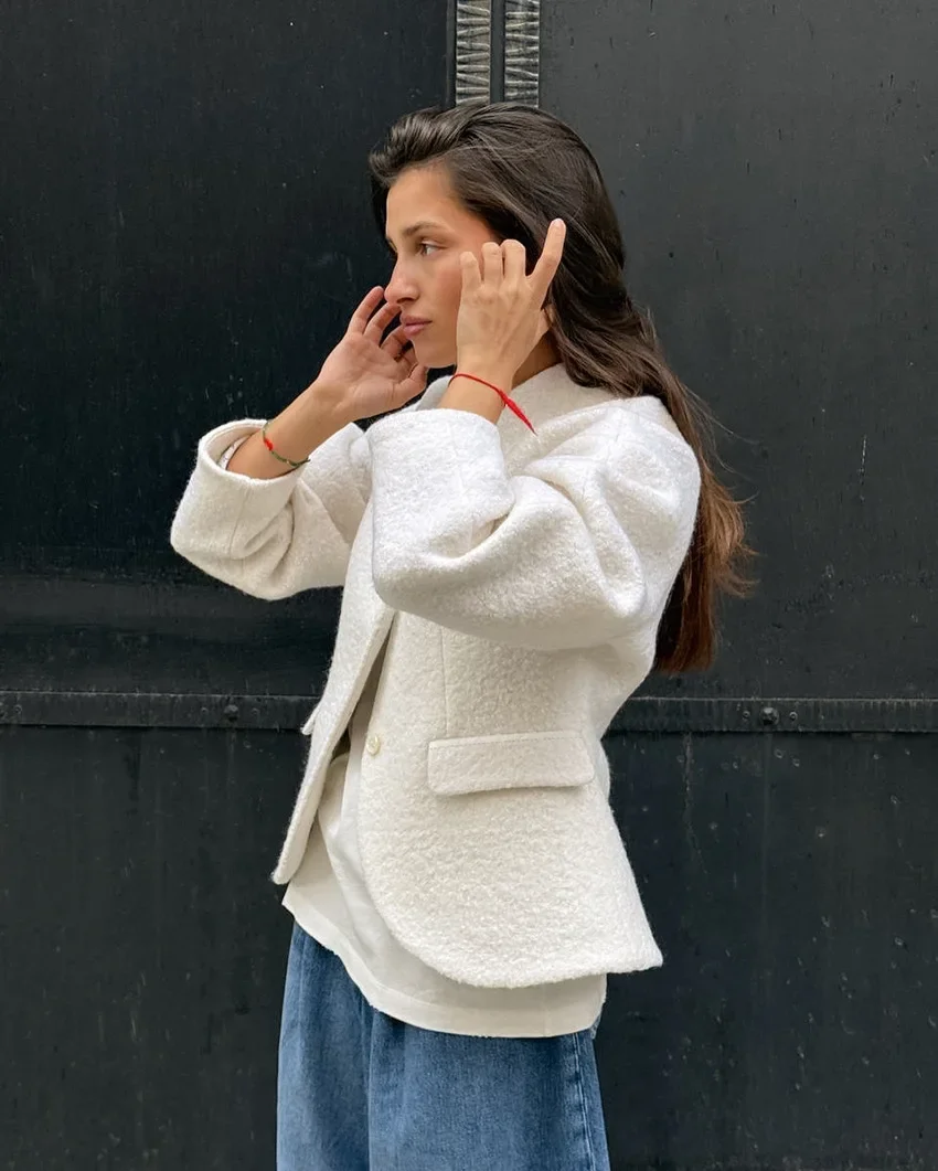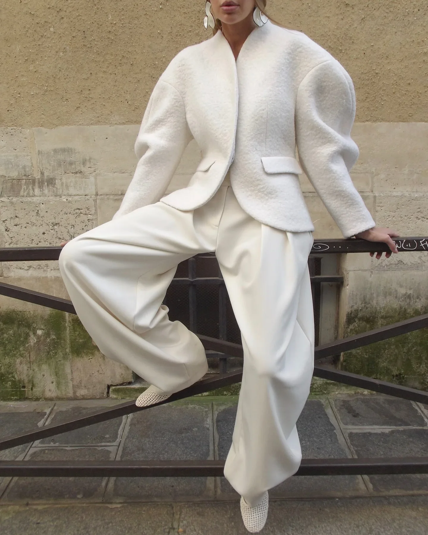 Cappotto in lana di agnello aderente in vita solida Moda donna Scollo a V Manica lunga Tasche monopetto Giacca Autunno Lady Commuter Outwear