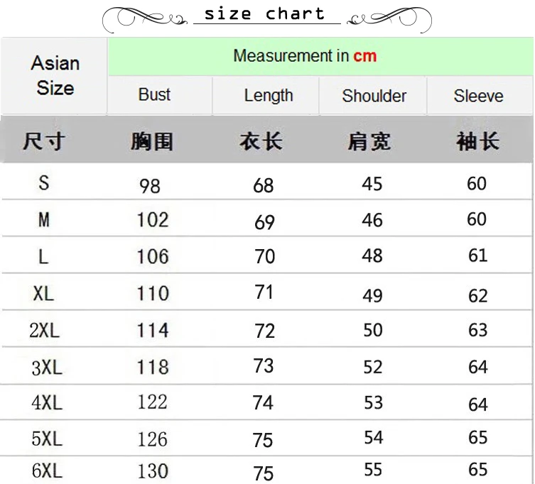 Punta: devi aumentare la taglia, contattare il servizio clienti, può essere personalizzato, note per messaggi, fornisce l’altezza e il peso, il numero di buste richiesto dei vestiti, puoi spedire la taglia della vestibilità! 7XL、8XL……