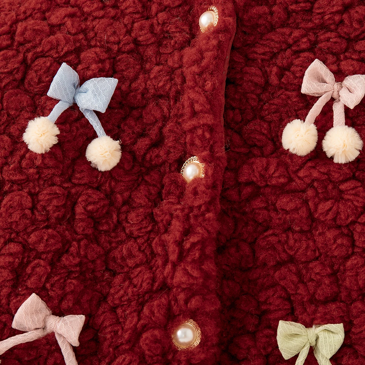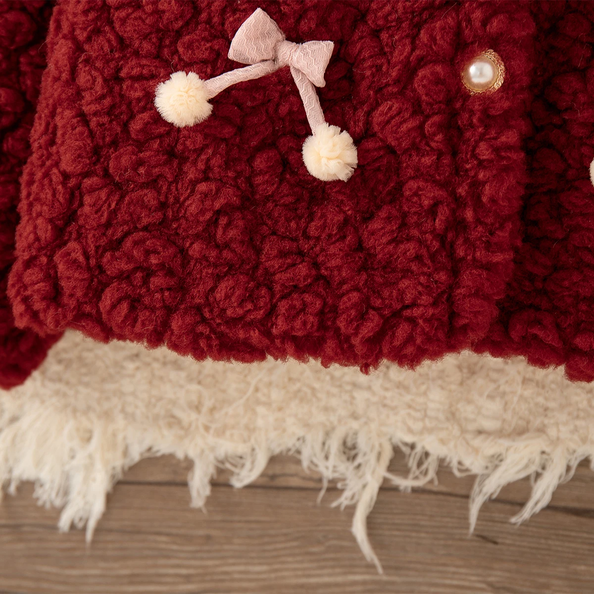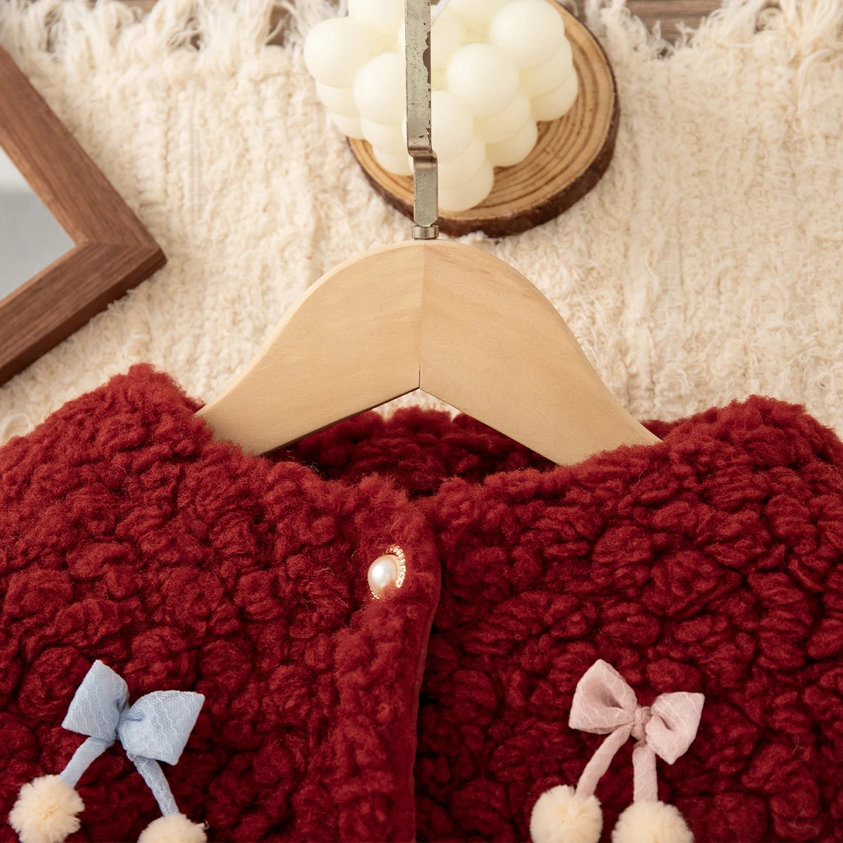 Cappotto invernale in pile per neonata, borsa regalo con fiocco carino, tinta unita, abbigliamento quotidiano caldo per bambini all’aperto (9 mesi a 4 anni)
