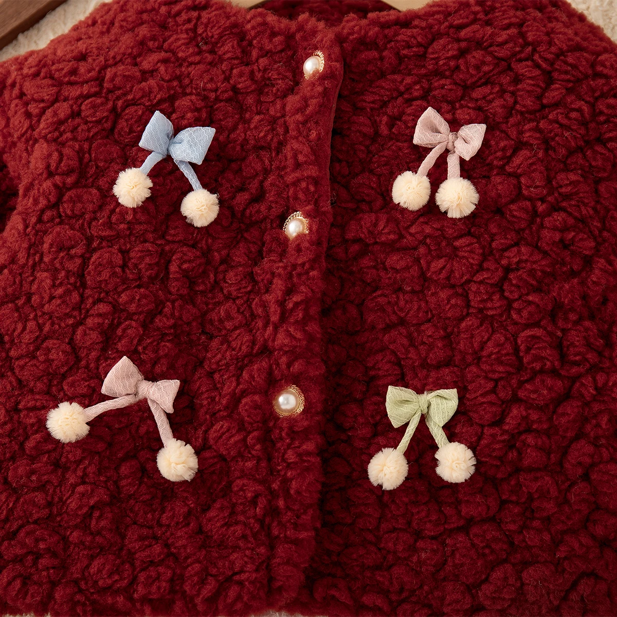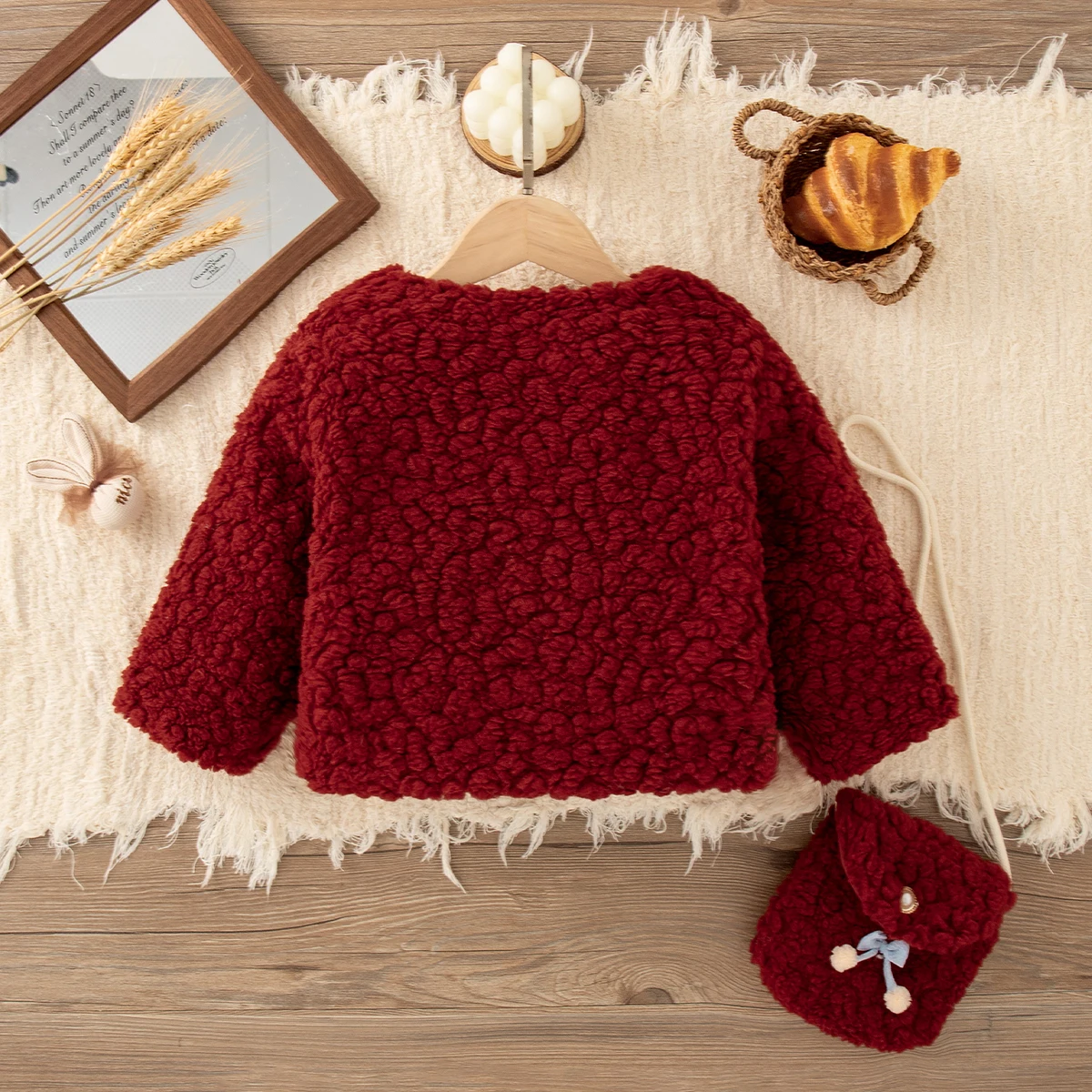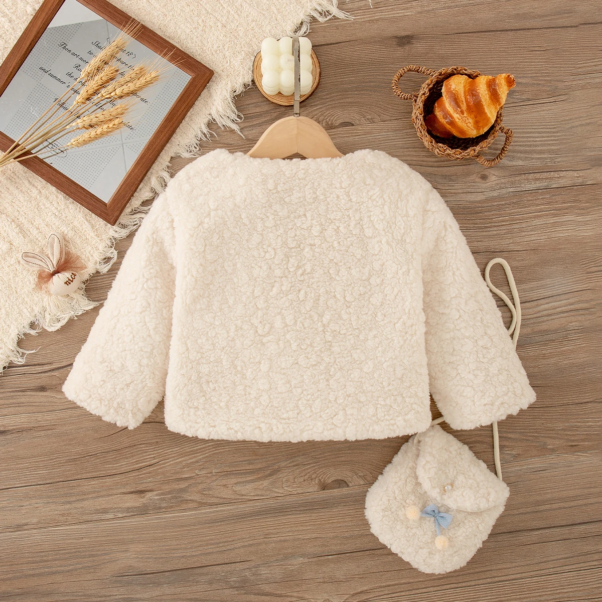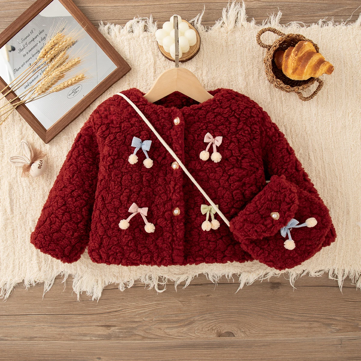 Cappotto invernale in pile per neonata, borsa regalo con fiocco carino, tinta unita, abbigliamento quotidiano caldo per bambini all’aperto (9 mesi a 4 anni)