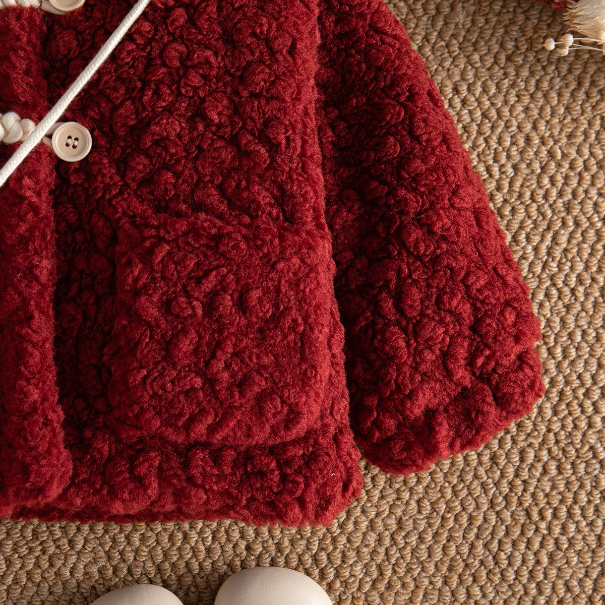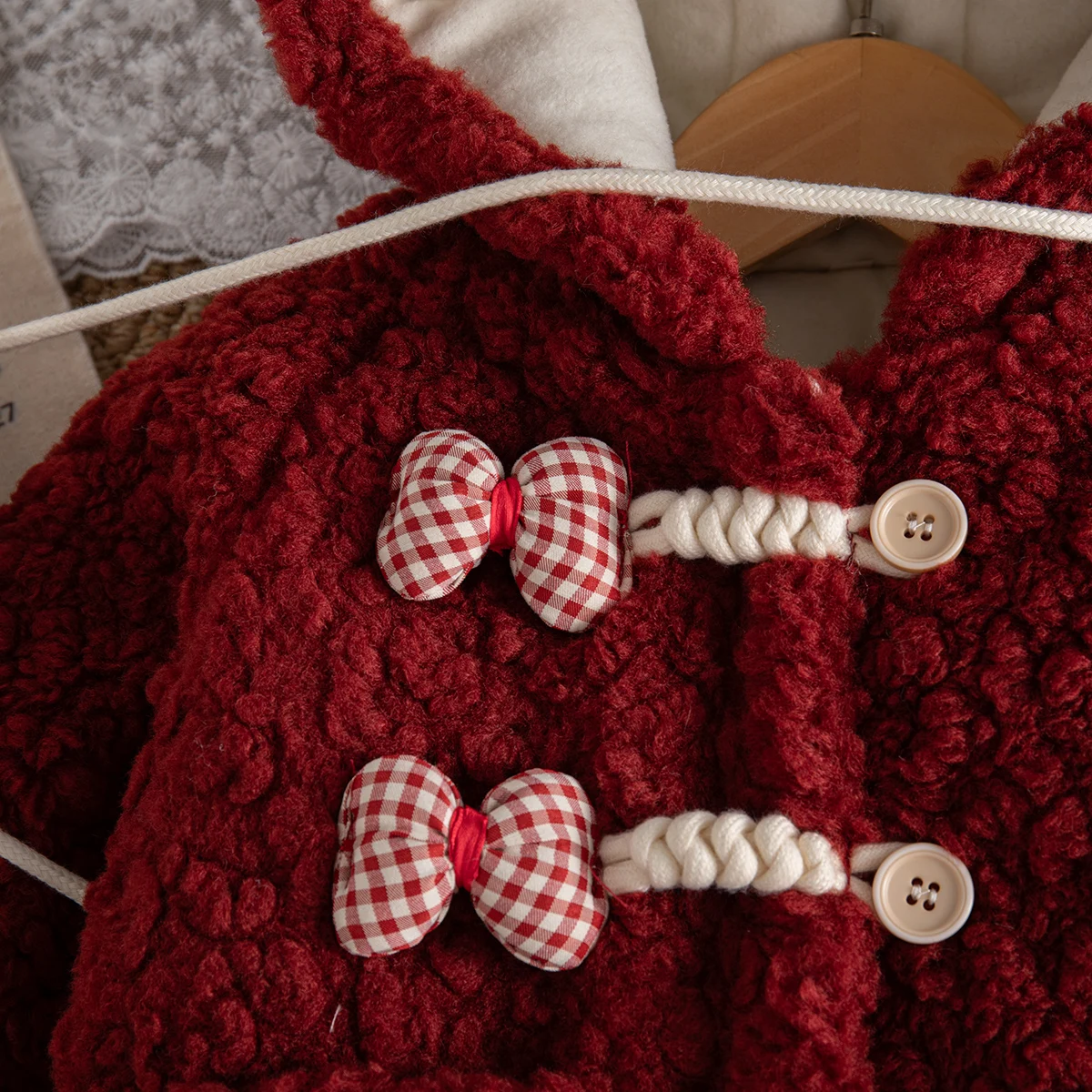Cappotto invernale in pile per neonata con cappuccio, sacchetto regalo con fiocco dolce, abbigliamento caldo quotidiano per bambini all’aperto (9 mesi a 4 anni)