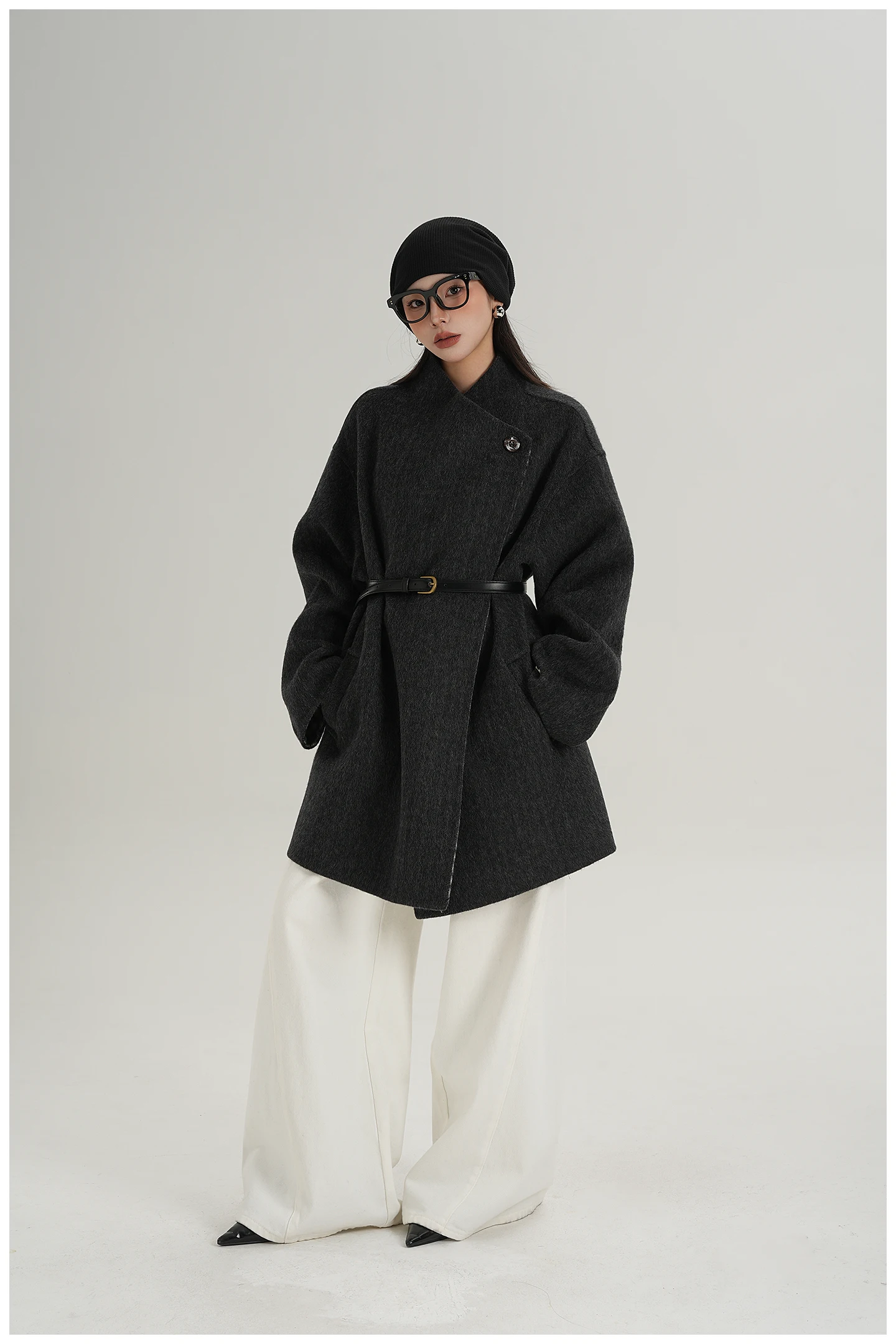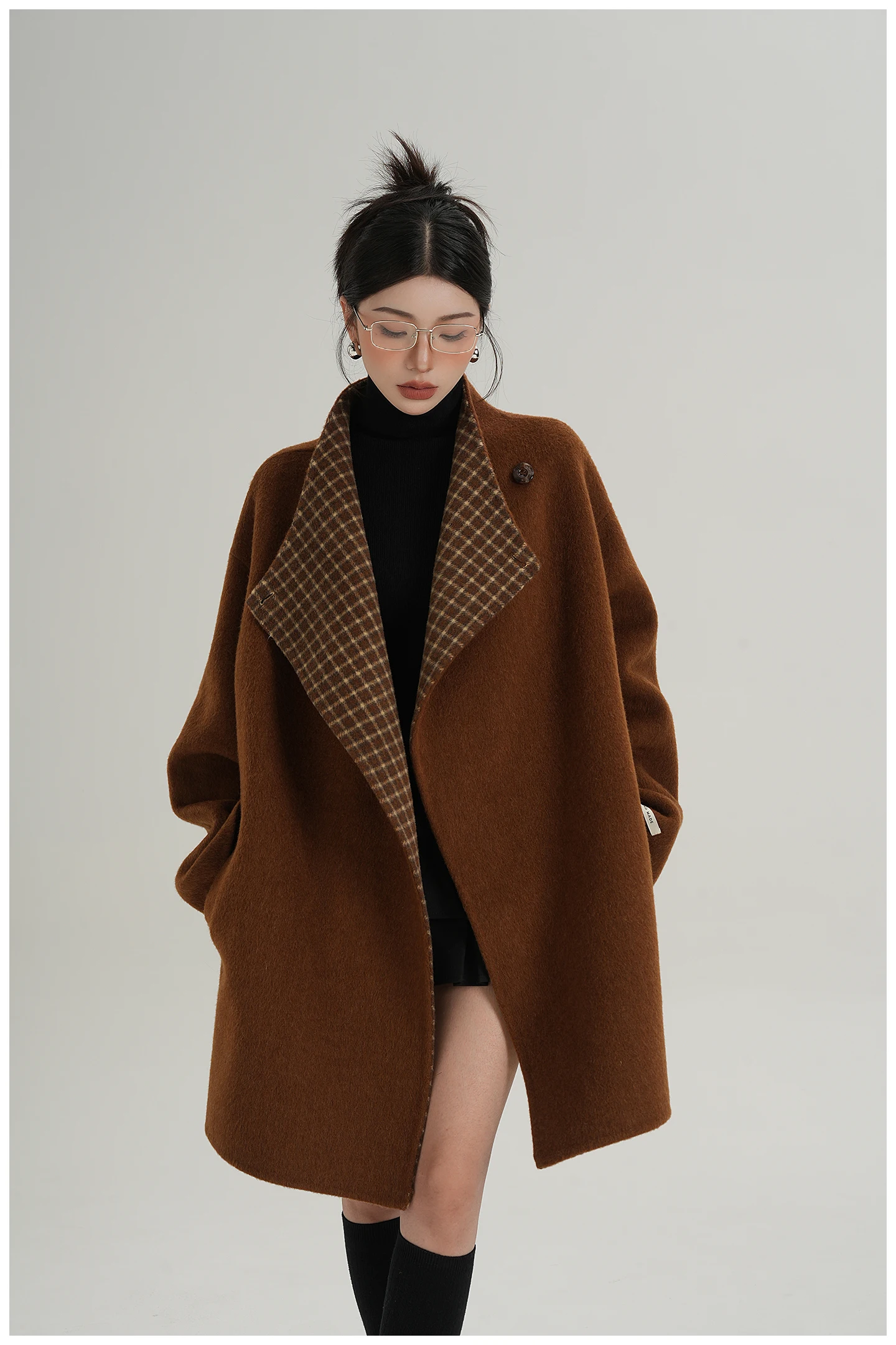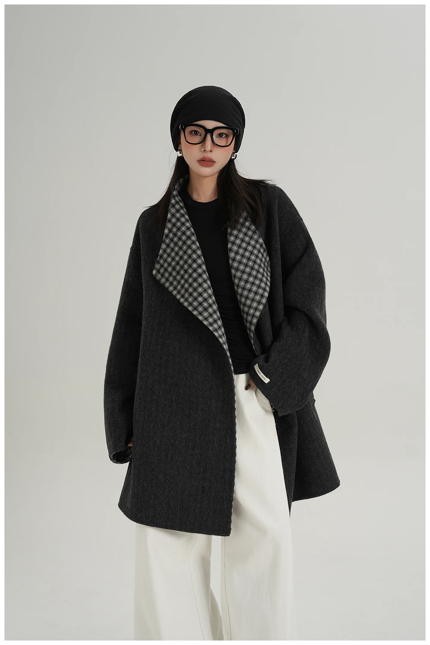 Cappotto lungo da donna in lana 100% naturale nero 2025 Elegante giacca in cashmere a maniche lunghe Cappotto invernale in lana con colletto couverture casual da donna