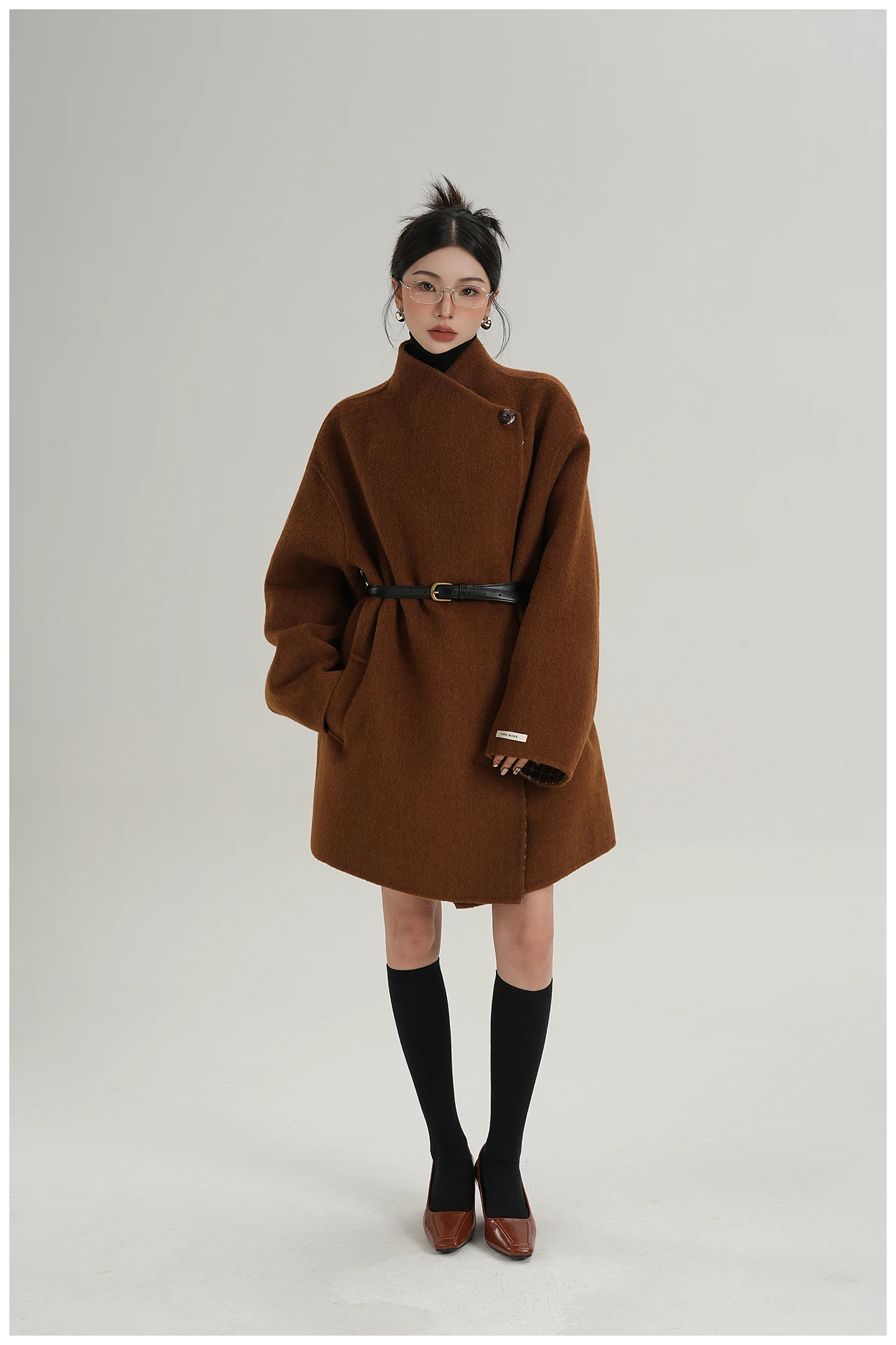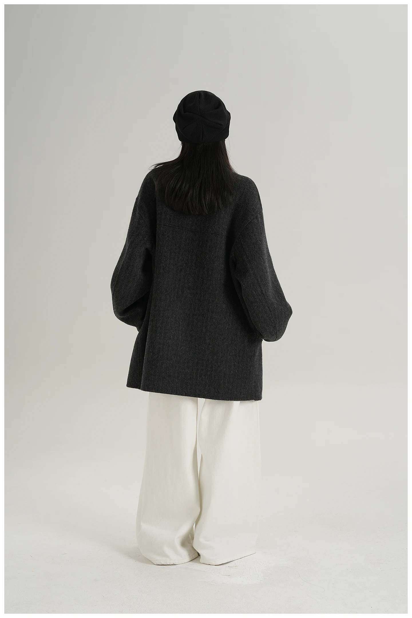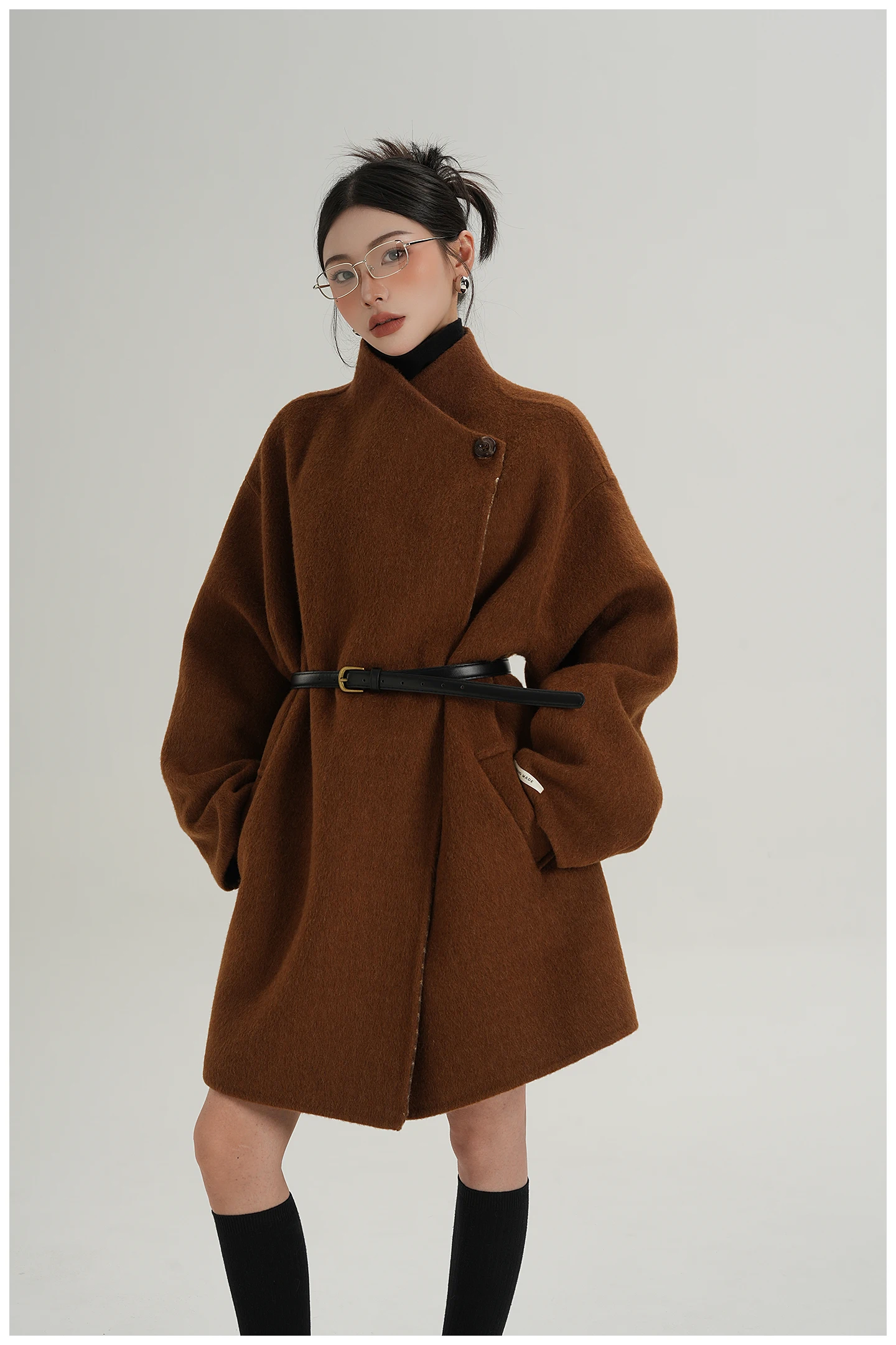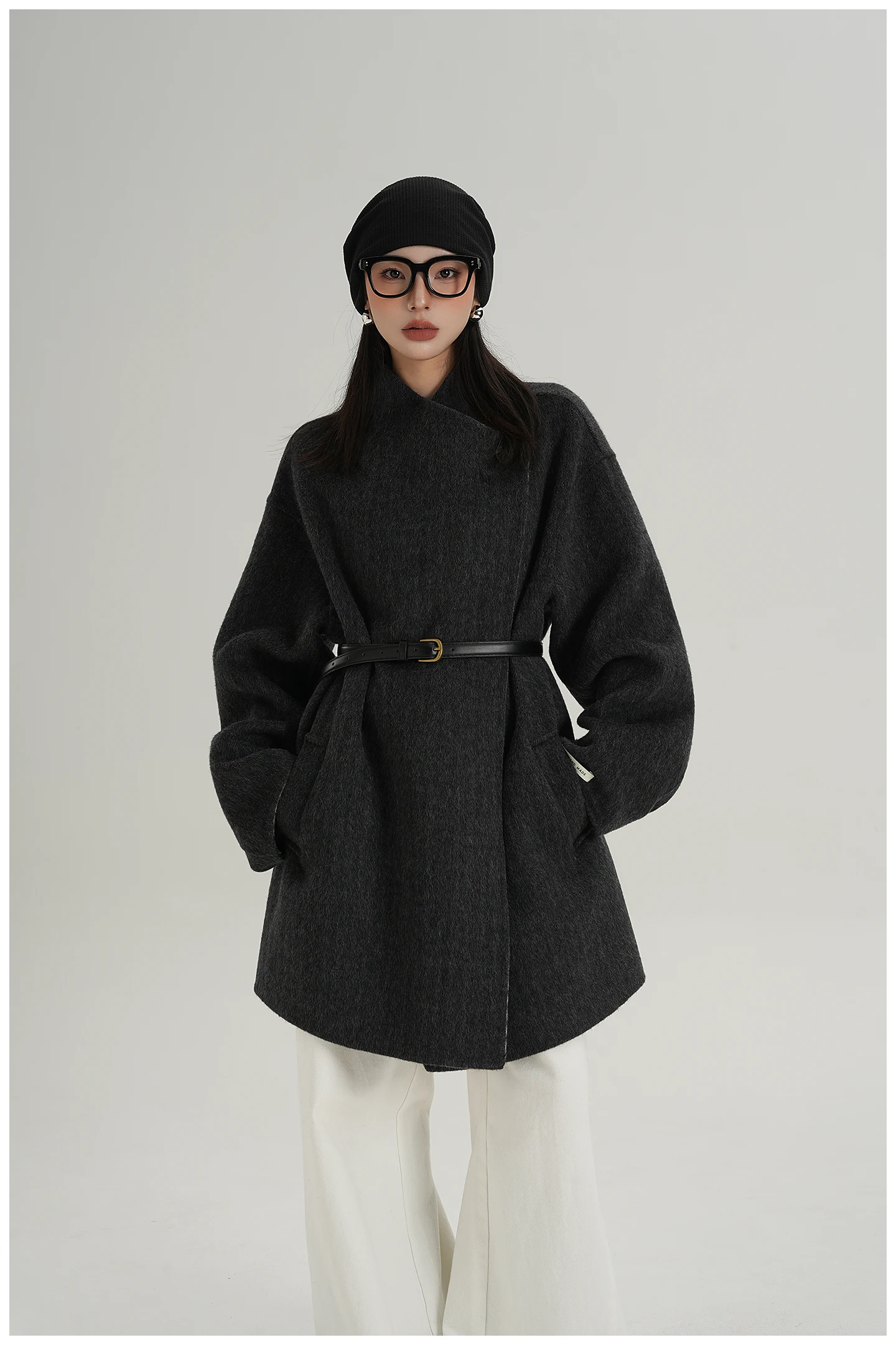 Cappotto lungo da donna in lana 100% naturale nero 2025 Elegante giacca in cashmere a maniche lunghe Cappotto invernale in lana con colletto couverture casual da donna