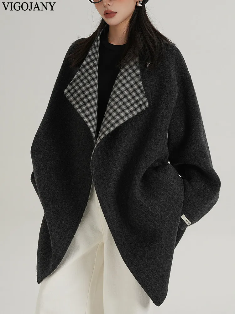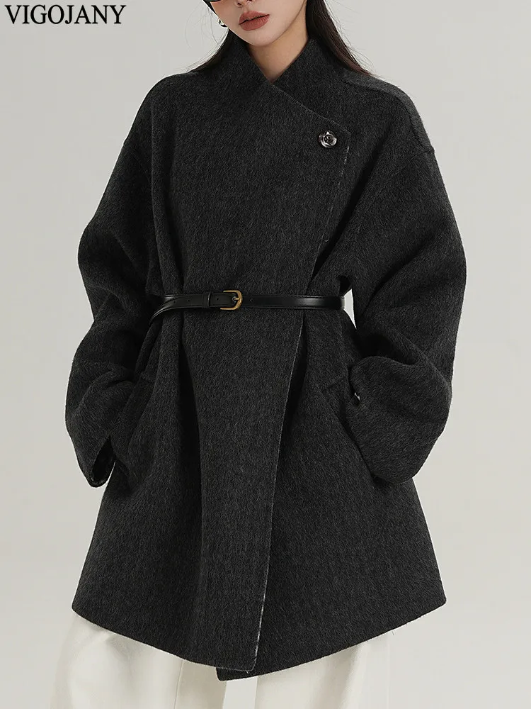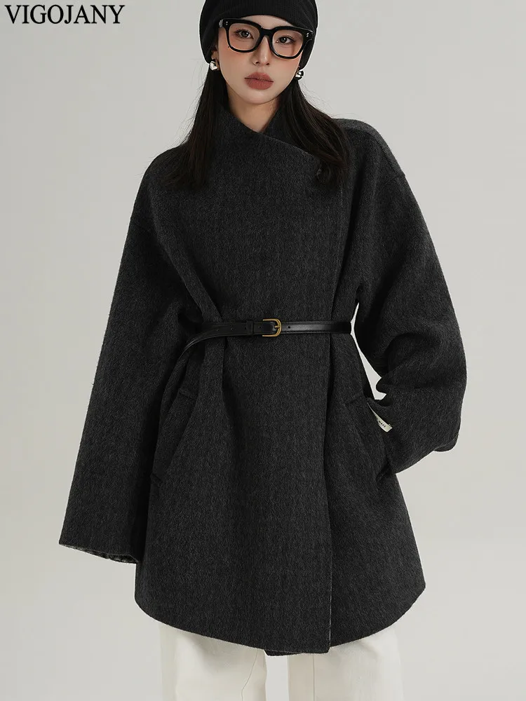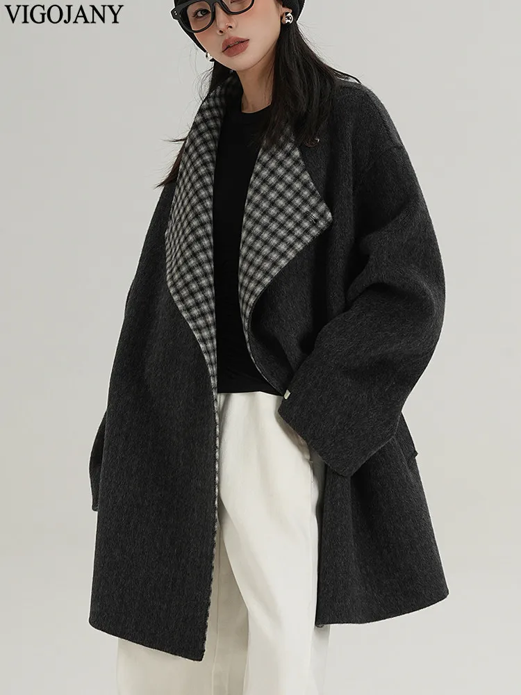 Cappotto lungo da donna in lana 100% naturale nero 2025 Elegante giacca in cashmere a maniche lunghe Cappotto invernale in lana con colletto couverture casual da donna