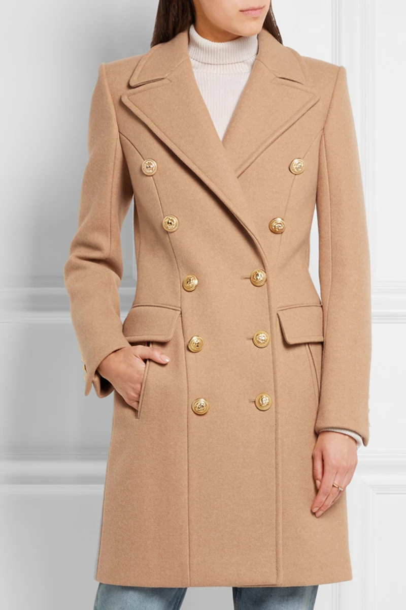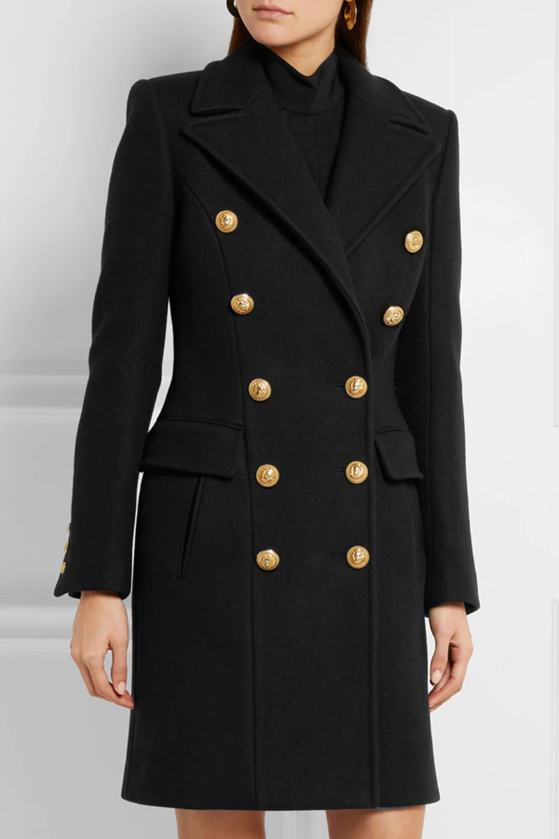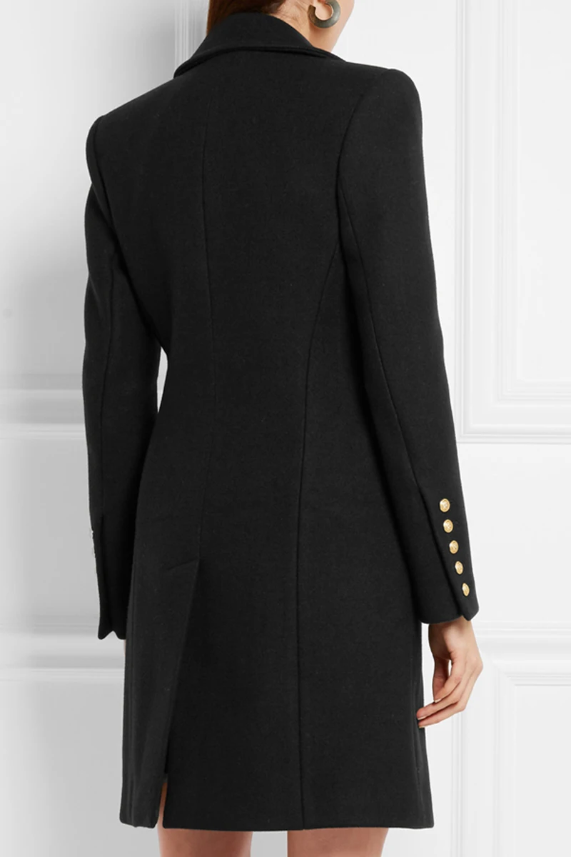 Cappotto lungo in lana imitazione Donna Autunno Inverno Militare Misto lana nera Giacca doppiopetto elegante cappotto di lana 1Cappotto lungo in lana imitazione Donna Autunno Inverno Militare Misto lana nera Giacca doppiopetto elegante cappotto di lana