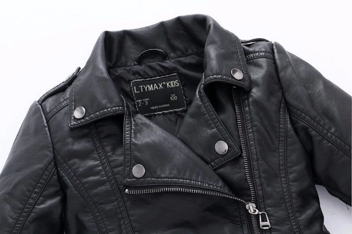 Cappotto per bambini in pelle da motociclista nera per ragazzi classici di moda di marca per la primavera autunno 2-14 anni 1Cappotto per bambini in pelle da motociclista nera per ragazzi classici di moda di marca per la primavera autunno 2-14 anni