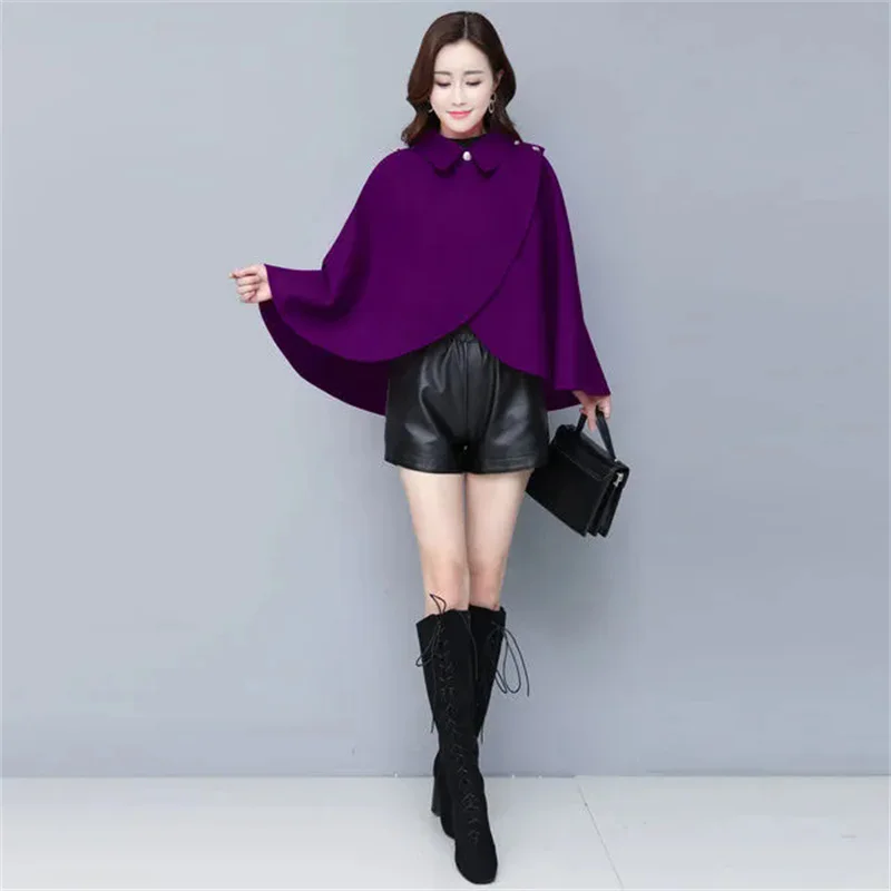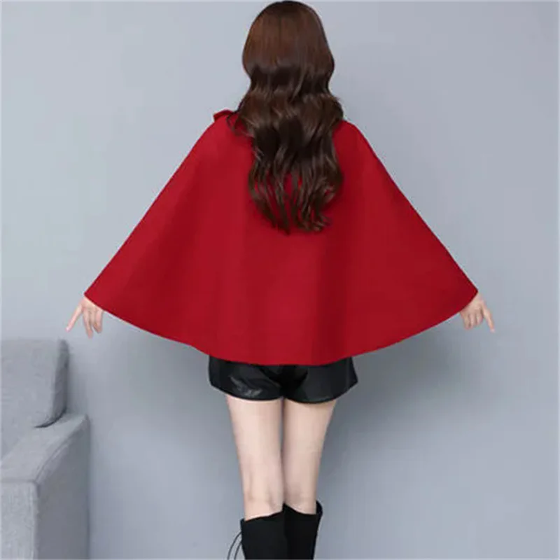 Cappotto scialle di lana moda per donna 2025 Autunno Inverno Nuova giacca di lana Capispalla corto Mantello Cappotto rosso nero Top Donna