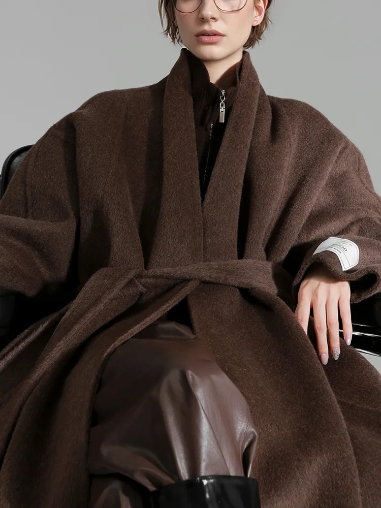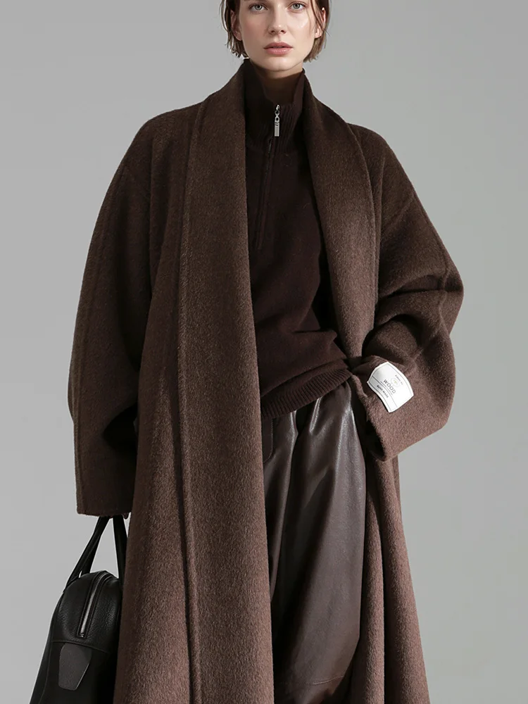 Cappotto sciolto in lana 100% stile accappatoio da donna, giacca elegante autunno inverno Fashio 2025