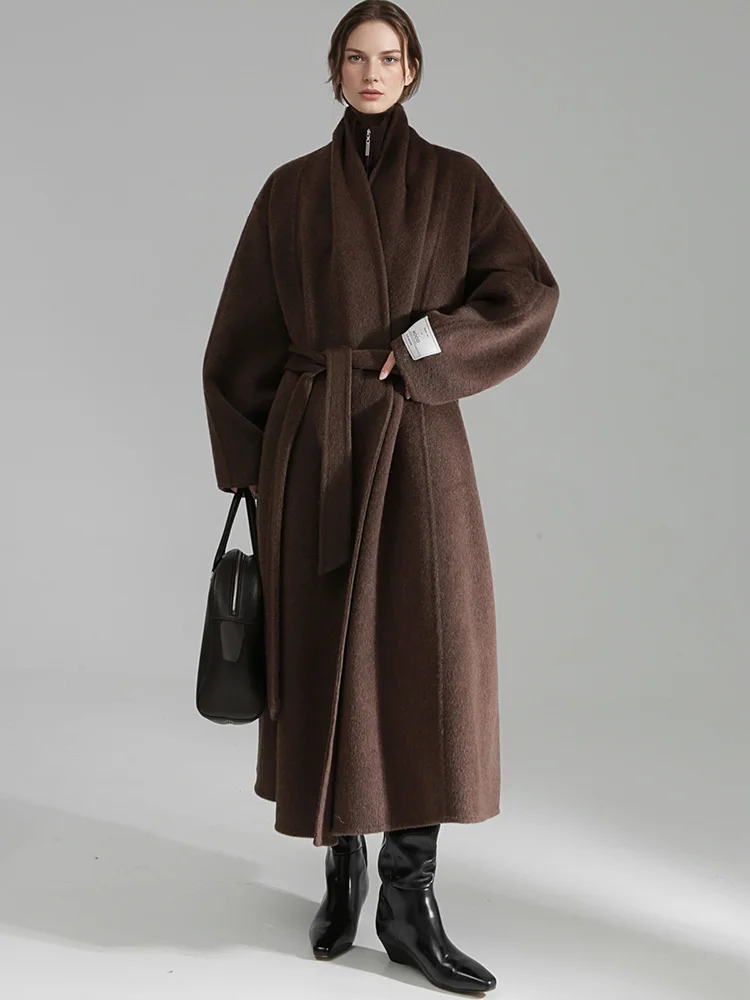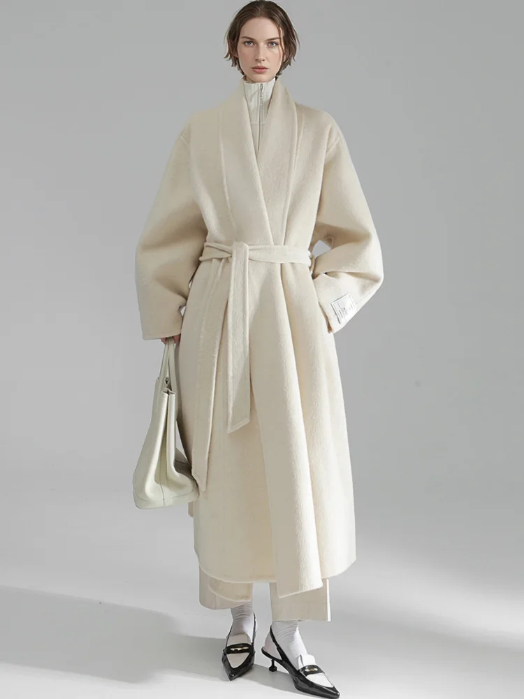 Cappotto sciolto in lana 100% stile accappatoio da donna, giacca elegante autunno inverno Fashio 2025 1Cappotto sciolto in lana 100% stile accappatoio da donna, giacca elegante autunno inverno Fashio 2025
