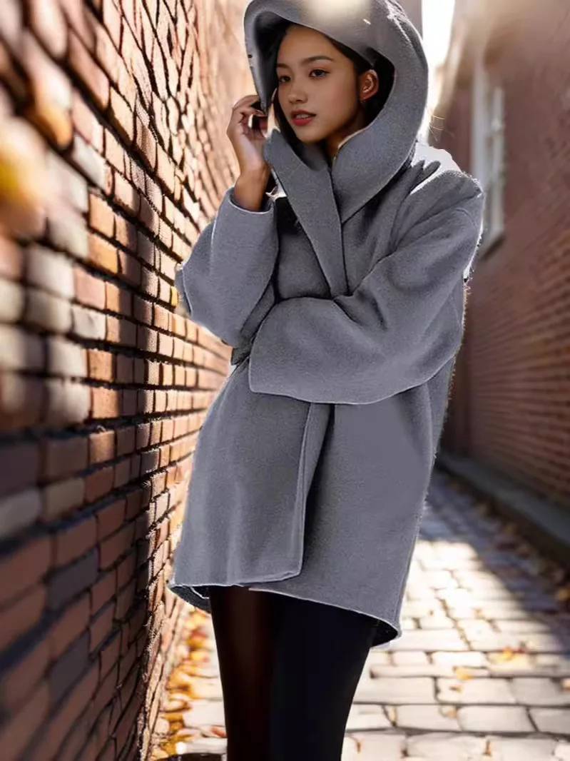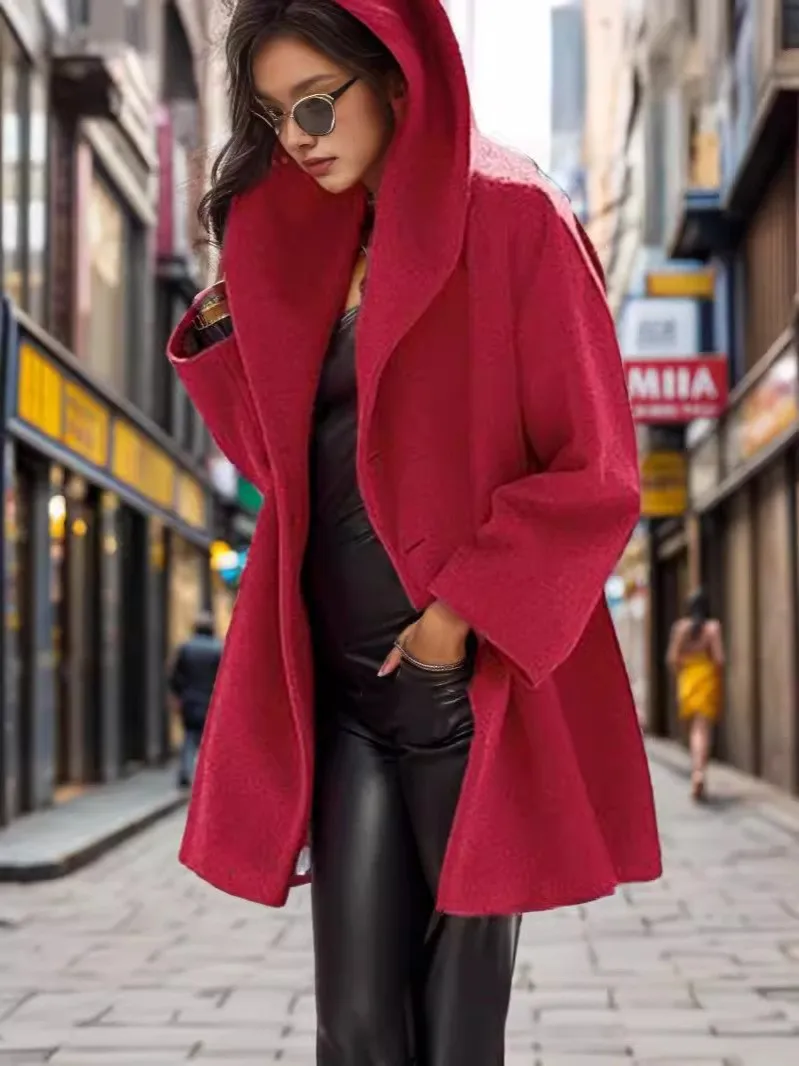 Caratterizzato da un cappuccio elegante, questo cappotto aggiunge un ulteriore livello di protezione contro gli elementi mantenendo un look chic.