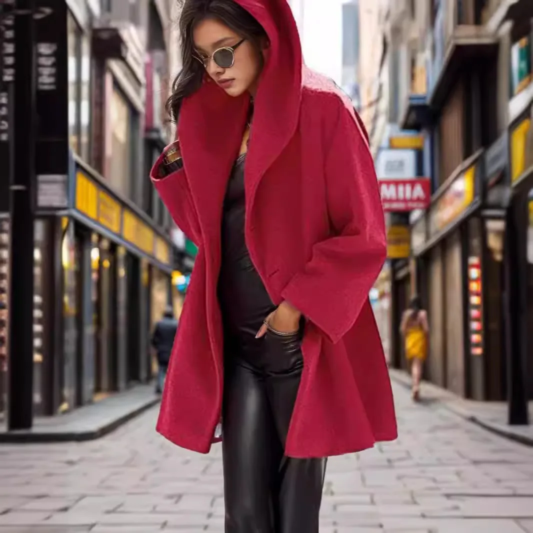 Caratterizzato da un cappuccio elegante, questo cappotto aggiunge un ulteriore livello di protezione contro gli elementi mantenendo un look chic.