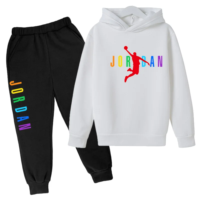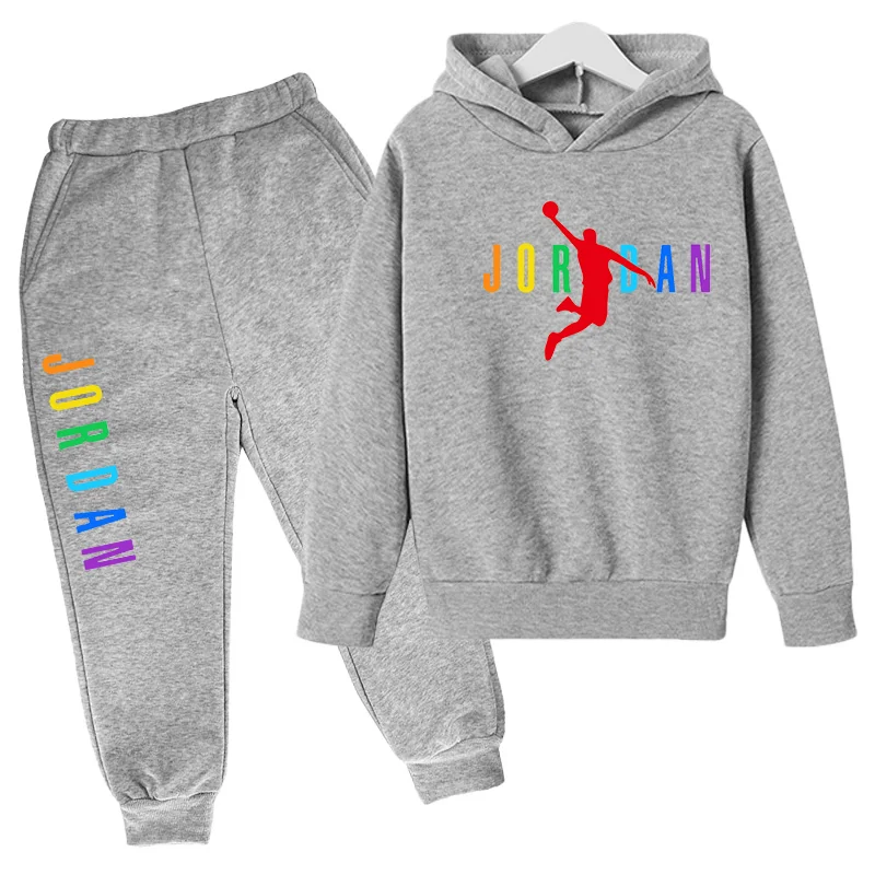 Cappotto sportivo per bambini 3-13 anni Felpa con cappuccio Basket Lettera Stampa Felpa per ragazzi Ragazze Bambino Top + Pantaloni 2P Elegante Casual Se