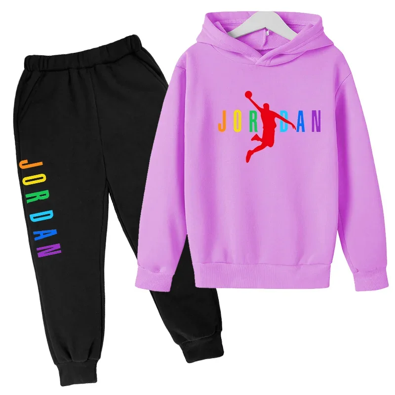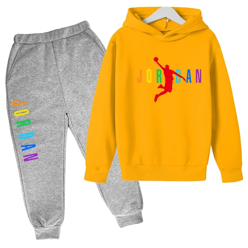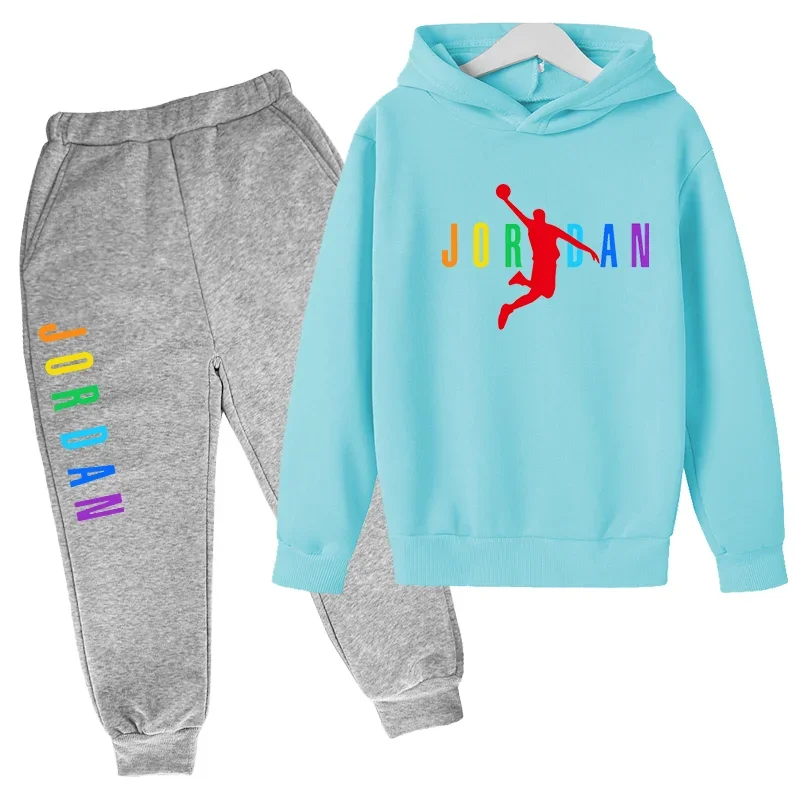 Cappotto sportivo per bambini 3-13 anni Felpa con cappuccio Basket Lettera Stampa Felpa per ragazzi Ragazze Bambino Top + Pantaloni 2P Elegante Casual Se