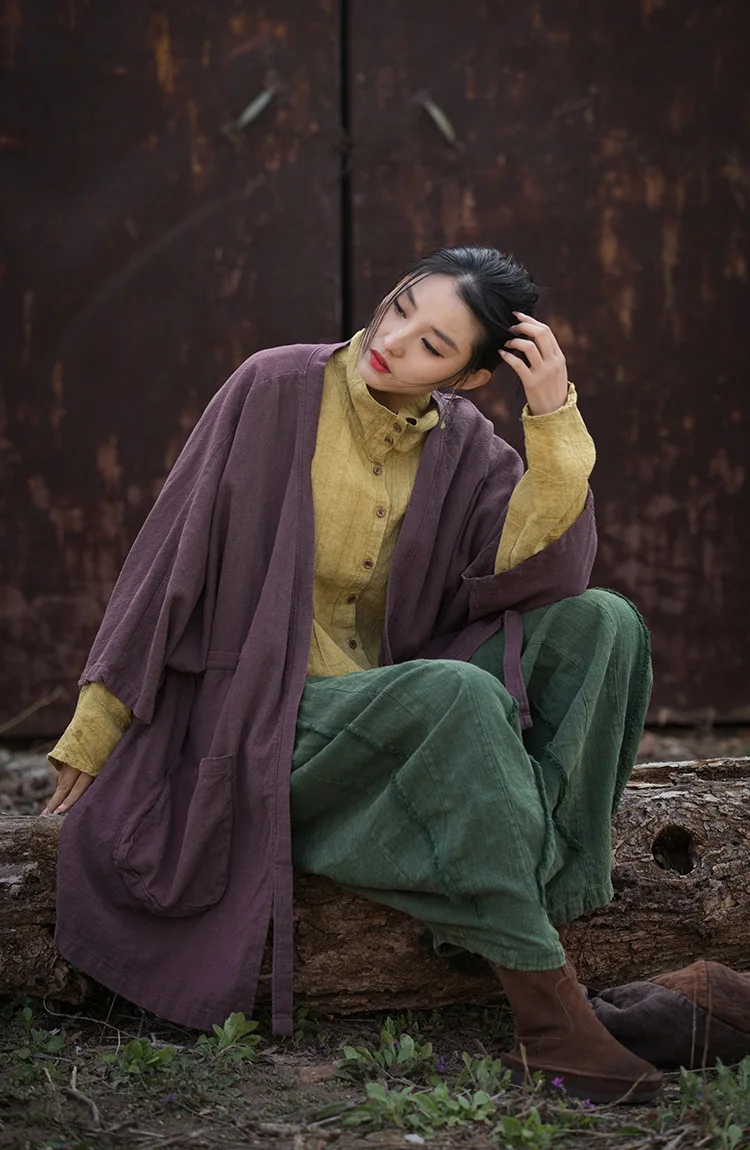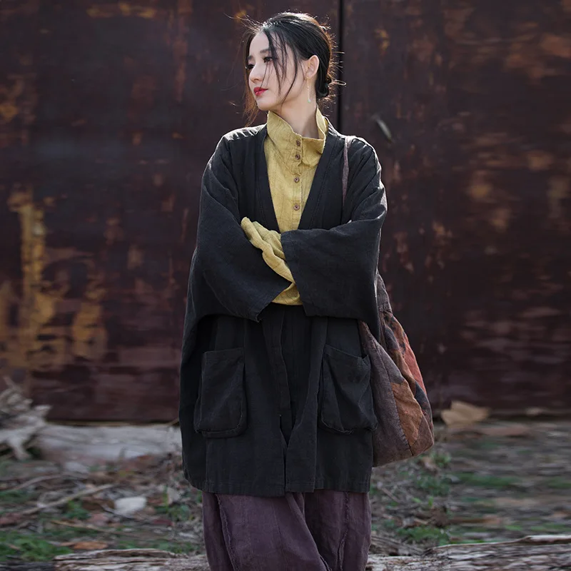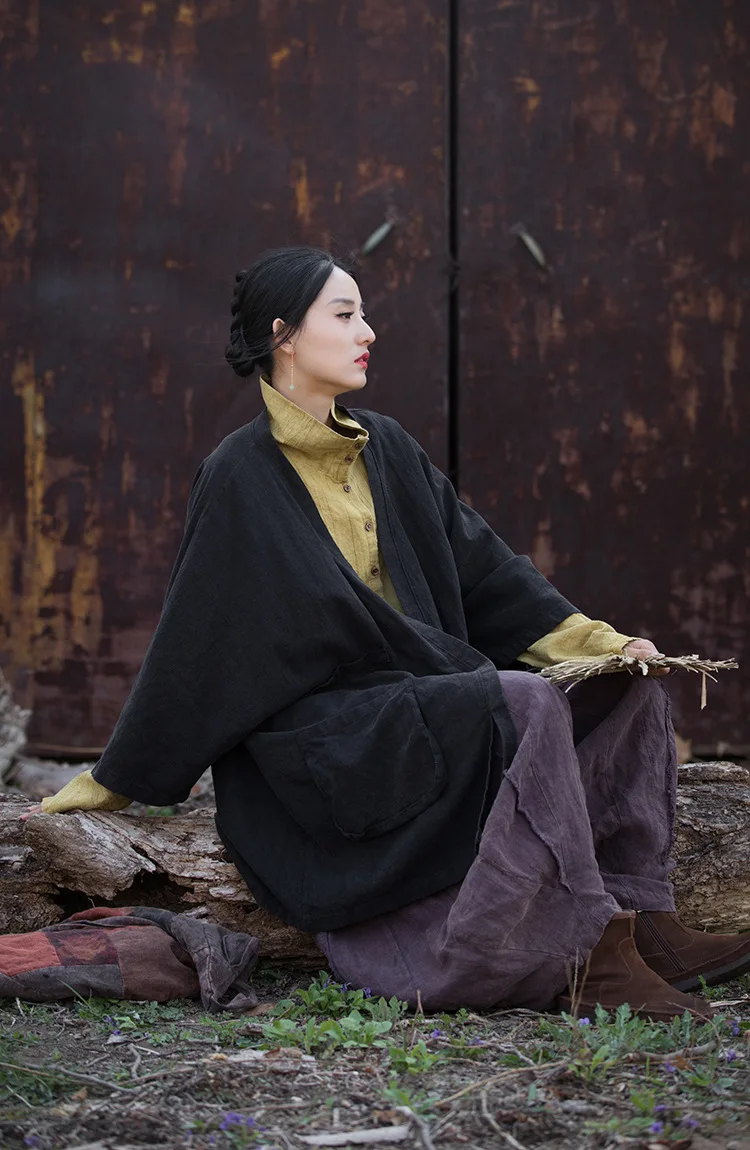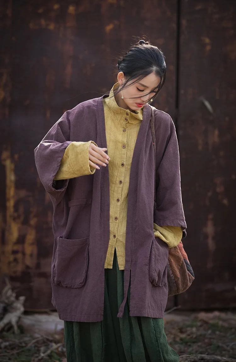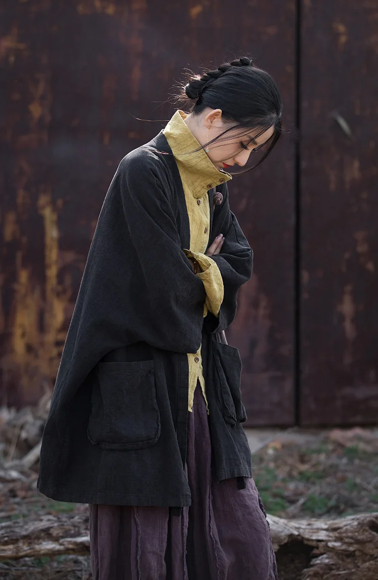 Cappotto stile accappatoio originale tinto in misto cotone autunno inverno Cardigan di media lunghezza ampio e aderente Top da donna pigro Boho-ChicPensa ad un Regalo Unico e Utile per le Persone a te Vicine!! Regala un buono a partire da € 10,00 a € 300,00
