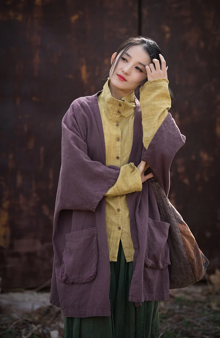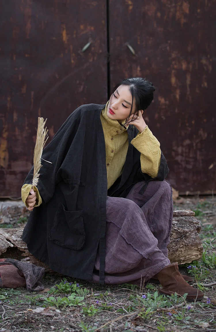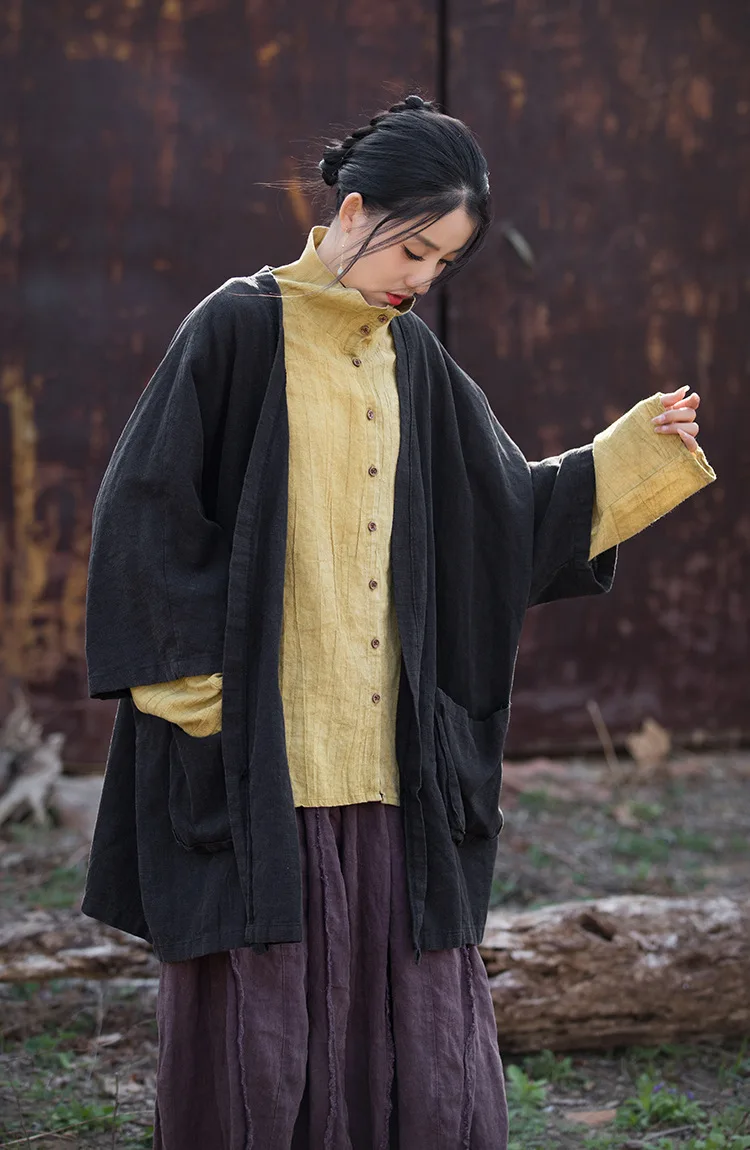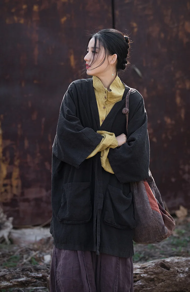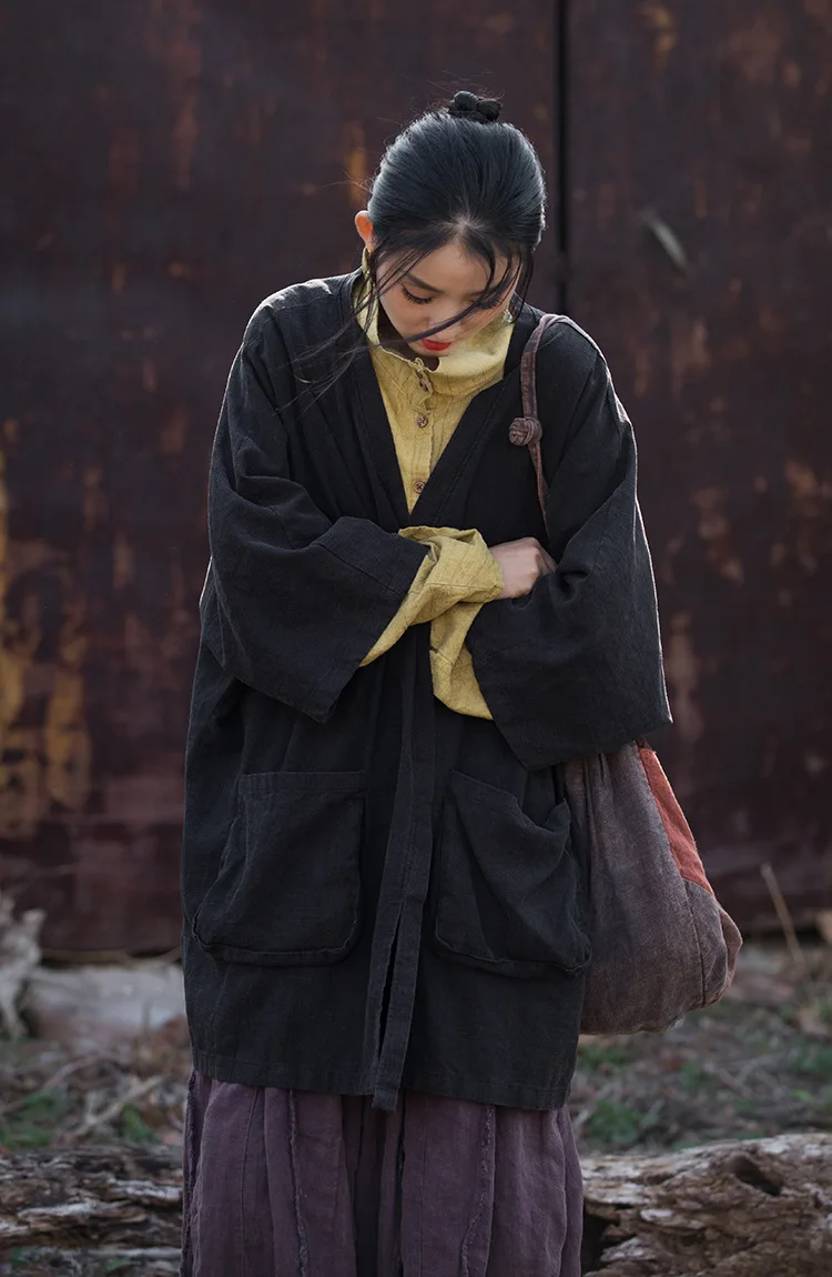 Cappotto stile accappatoio originale tinto in misto cotone autunno inverno Cardigan di media lunghezza ampio e aderente Top da donna pigro Boho-ChicPensa ad un Regalo Unico e Utile per le Persone a te Vicine!! Regala un buono a partire da € 10,00 a € 300,00