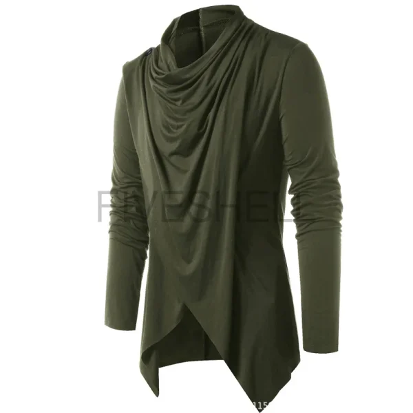 Costume medievale Vintage da uomo a due vie nero asimmetrico sovrapposto cardigan casual manica lunga collo a scialle aperto sul davanti top cappotto