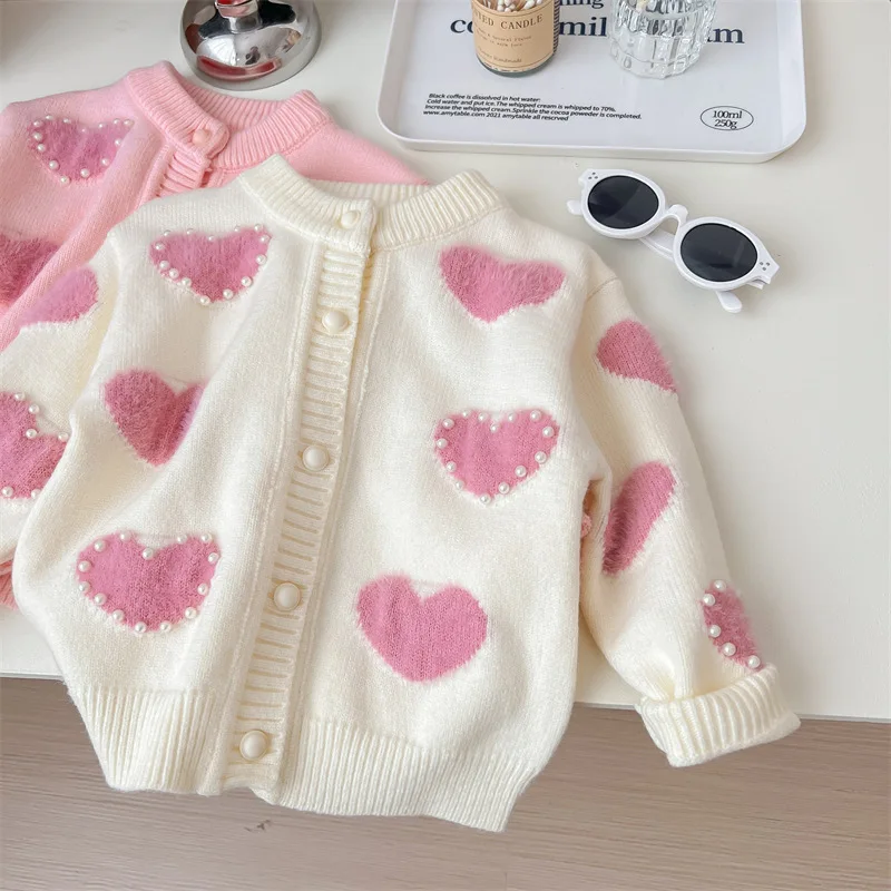 Cardigan lavorato a maglia da ragazza in stile coreano – Maglione primaverile per bambini con fiocco, top in lana calda e carina per i più piccoli, vestiti invernali per bambina