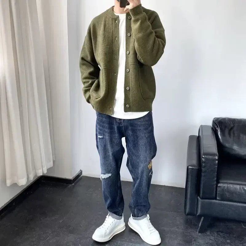 Cardigan lavorato a maglia da uomo maglioni monopetto manica lunga o collo maglioni bottoni solidi vestibilità ampia casual 2025 capispalla invernale 1Cardigan lavorato a maglia da uomo maglioni monopetto manica lunga o collo maglioni bottoni solidi vestibilità ampia casual 2025 capispalla invernale