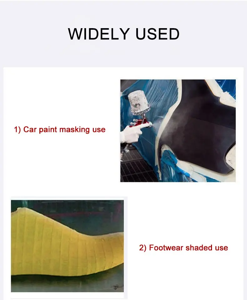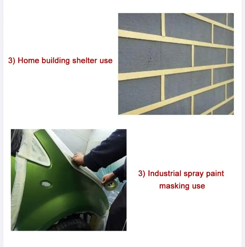 La carta per mascheratura è ampiamente utilizzata nella verniciatura di automobili, nella verniciatura di elettrodomestici, nella decorazione di edifici commerciali, nell’ufficio, nella scrittura, nella verniciatura, nella sigillatura dell’industria calzistica, ecc.