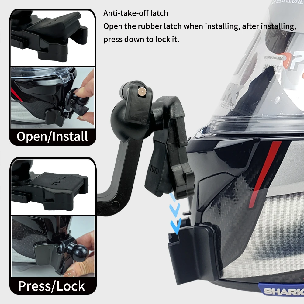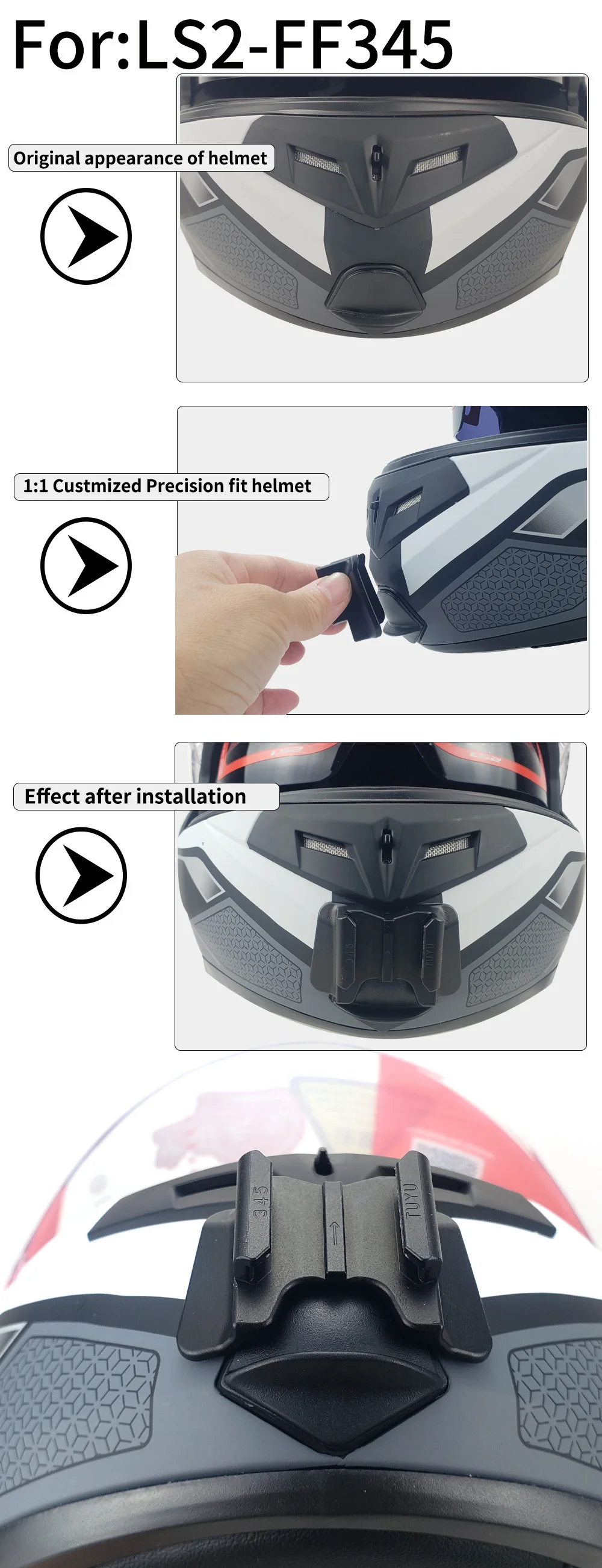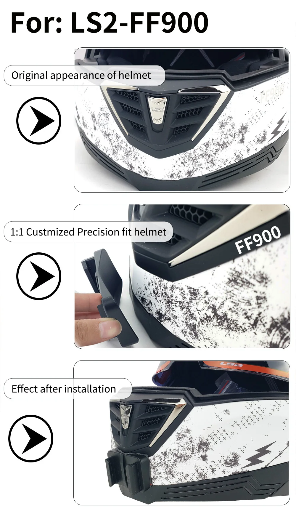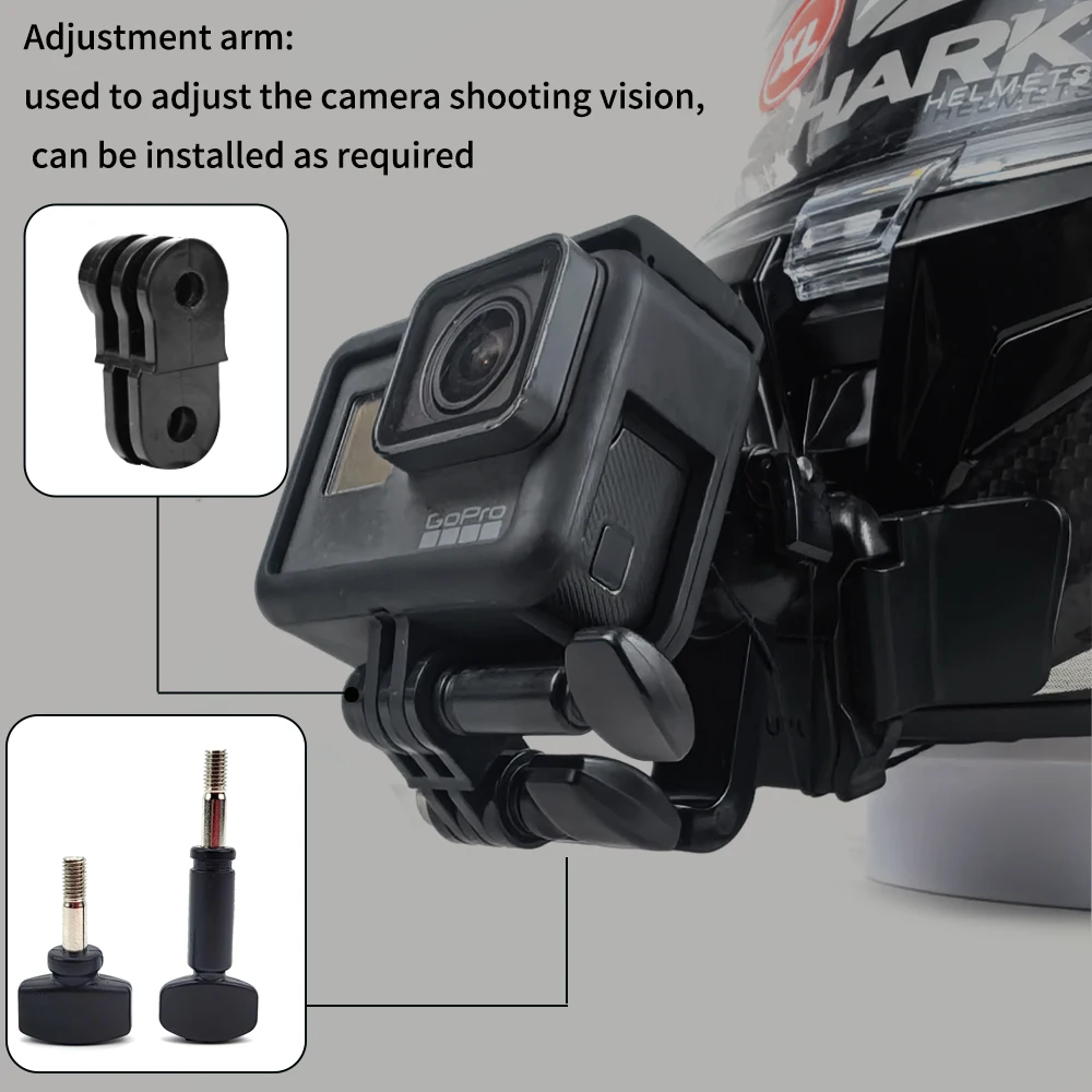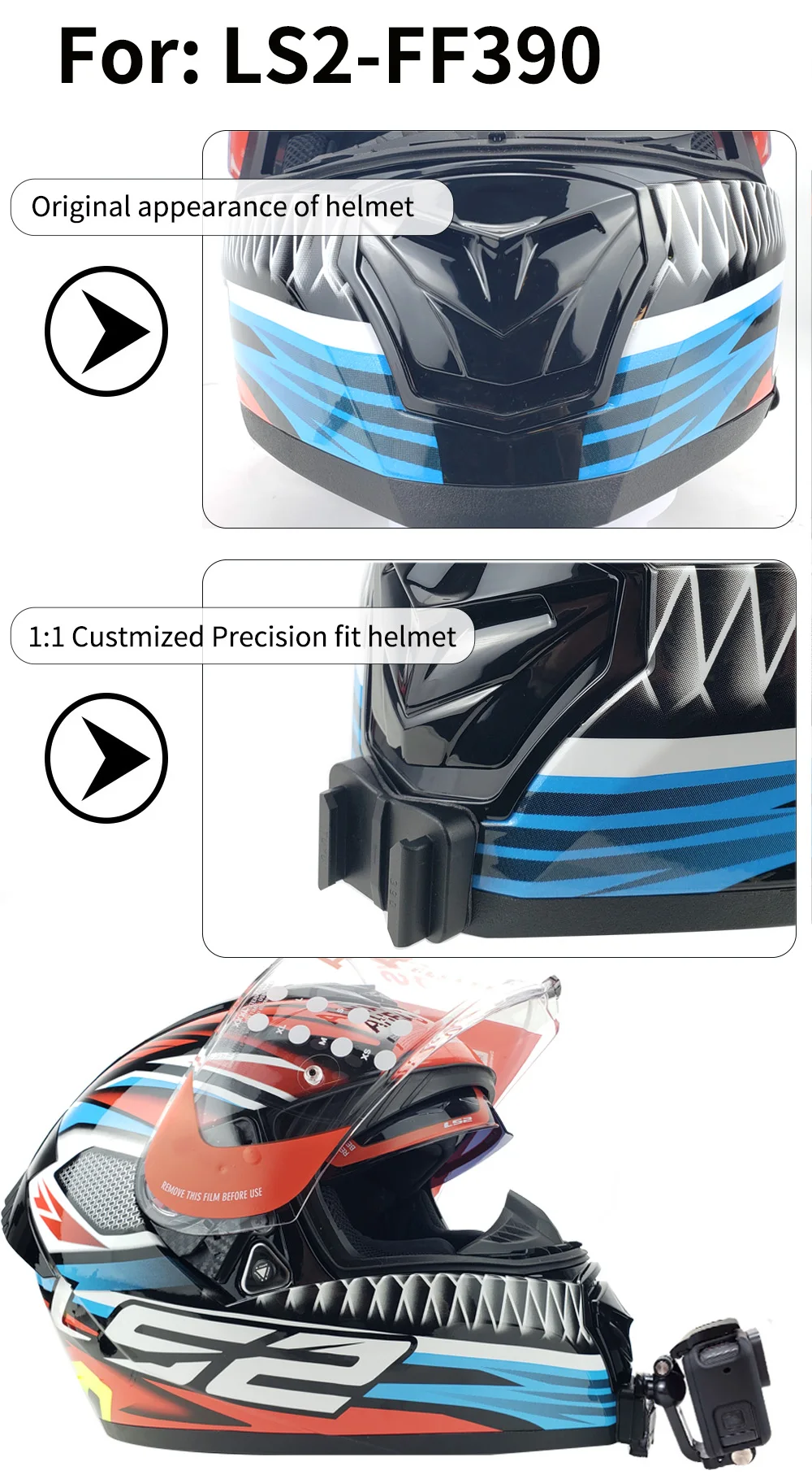Nessun staffe o cinghie aggiuntive sono richieste dopo l’installazione e l’aspetto originale del casco è mantenuto tanto possibile.È solo bisogno di un autentico cuscinetto adesivo 3M per adattarsi saldamente.Il casco non è danneggiato dovuta a smontare e montare, e si adatta perfettamente.In aggiunta, la staffa non blocca l’interruttore della presa d’aria e la vestibilità è ferma.Dopo l’installazione è completa, agitare il gopro e scuotere il casco senza allentità.