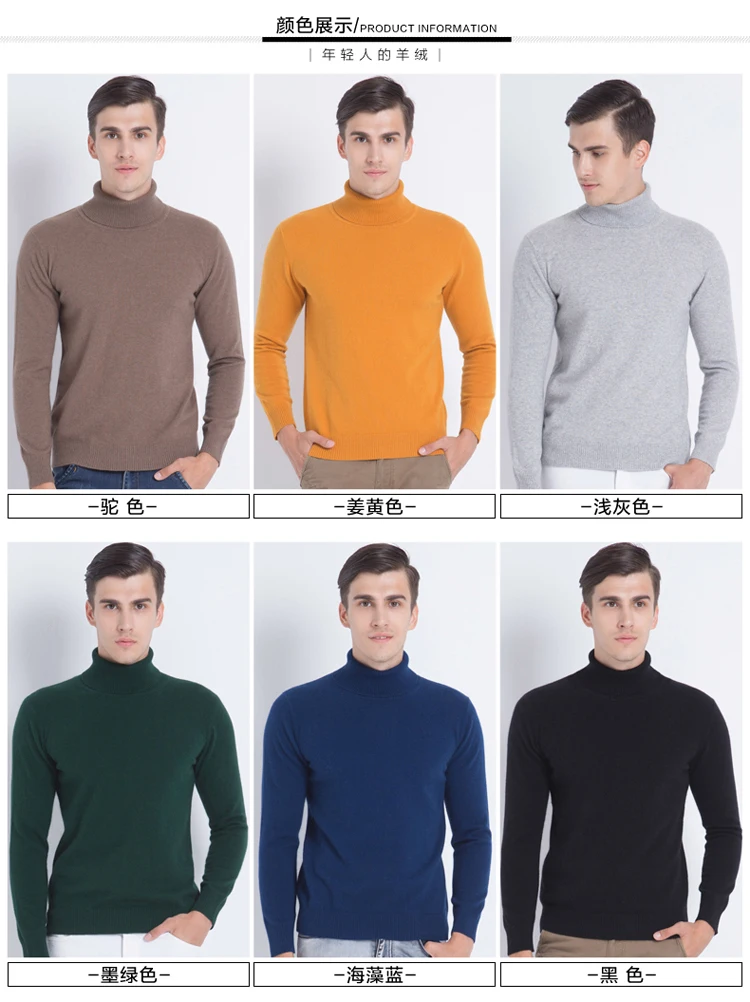 Cashmere A Collo Alto del Maglione Degli Uomini di Autunno Inverno Collo alto A Manica Lunga Colori Solidi Pullover Classico Maglione casual Uomo Copre il trasporto libero