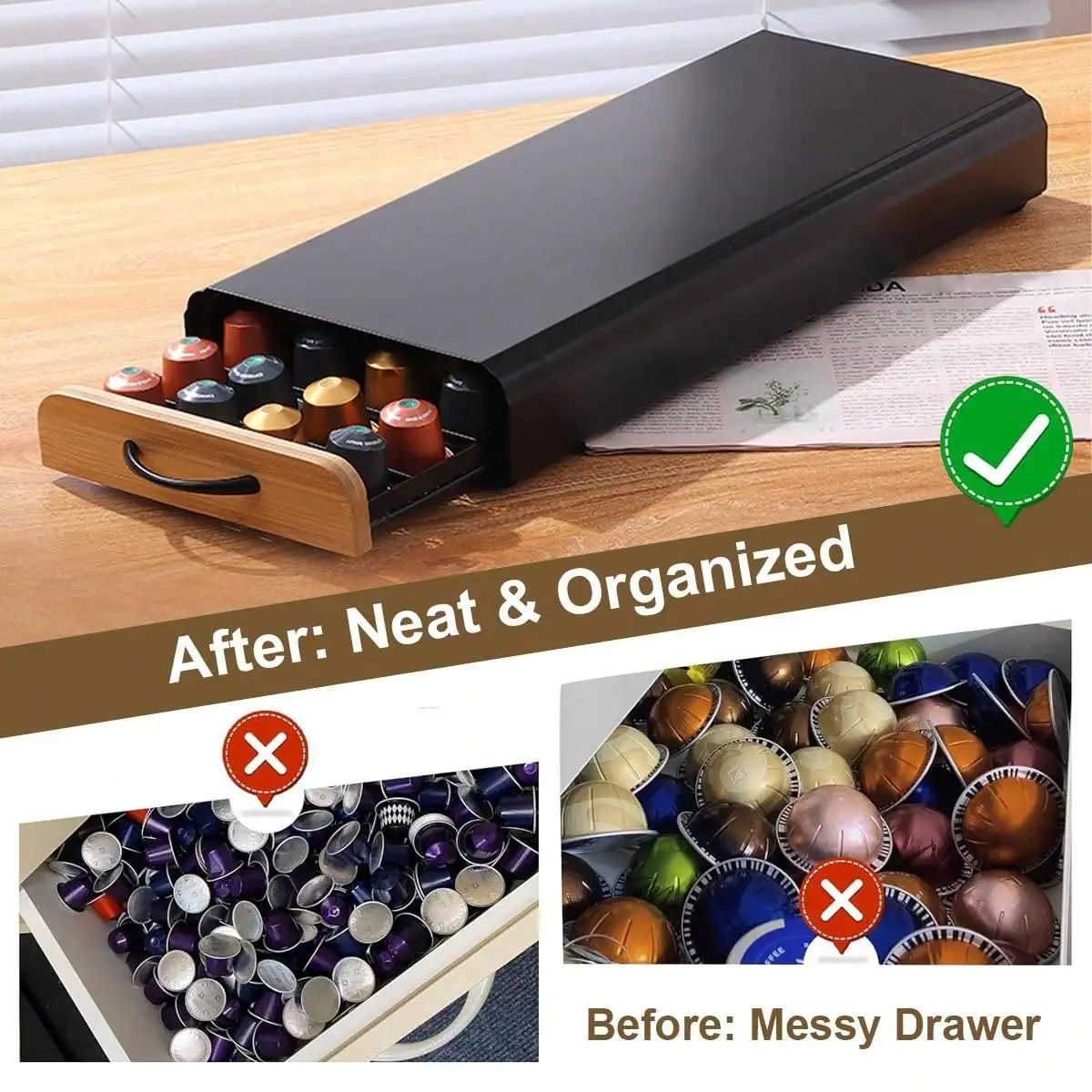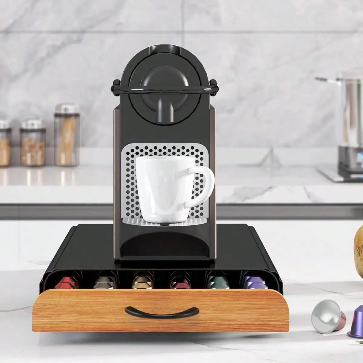 Routine di caffè semplificate: Inizia il giorno del piede destro con questo organizer per capsule di caffè, che consente facilmente tirare un cassetto e vedere le tue capsule di caffè, risparmiare tempo nel mattino, questo cassetto può contenere fino a 40 capsule.