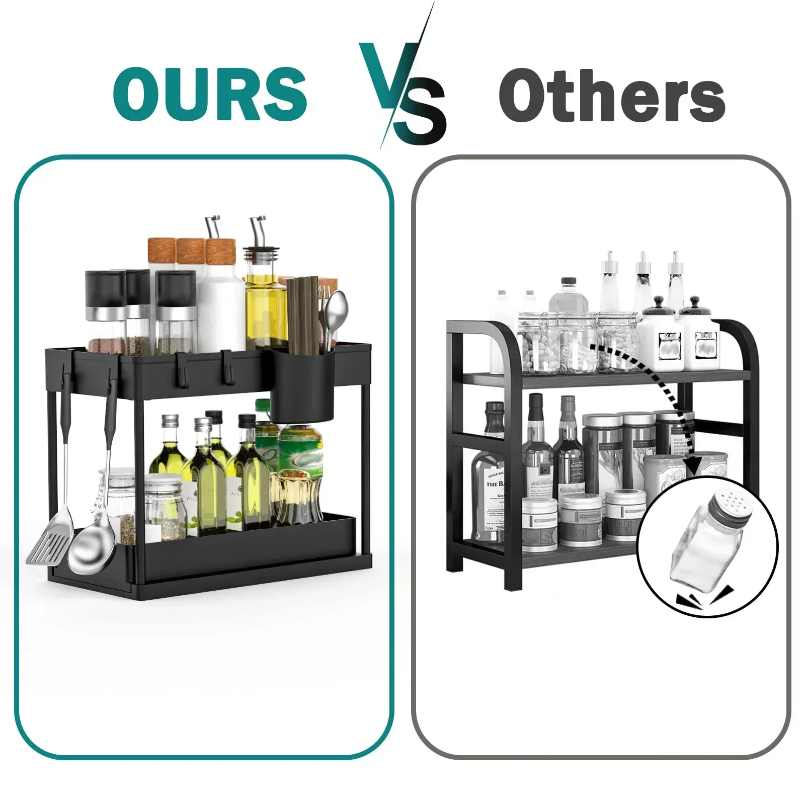Massimizza il tuo spazio di archiviazione: 2 livelli sotto gli organizzatori del lavandino e organizzare i tuoi articoli per la pulizia, lozioni o i tuoi attrezzi per capelli, ideali per cucina, lavandino del bagno, lavanderia
