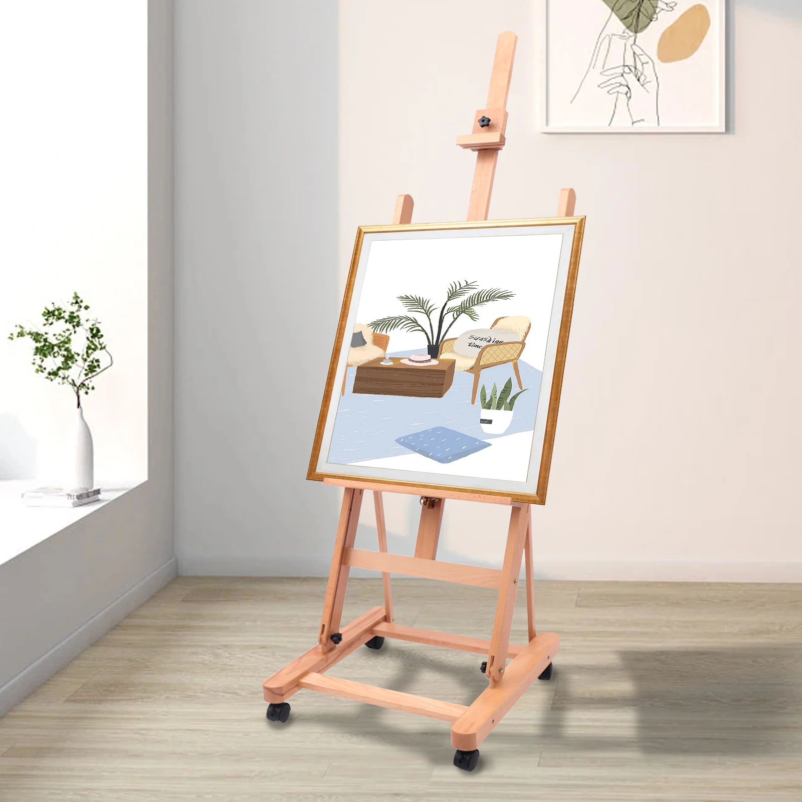 Posizionamento stabile della pittura:Il cursore superiore con doppie fessure e il bordo rialzato del cavalletto con cornice a H consentono di posizionare stabilmente la tela e impedisce che si inclini o cada.