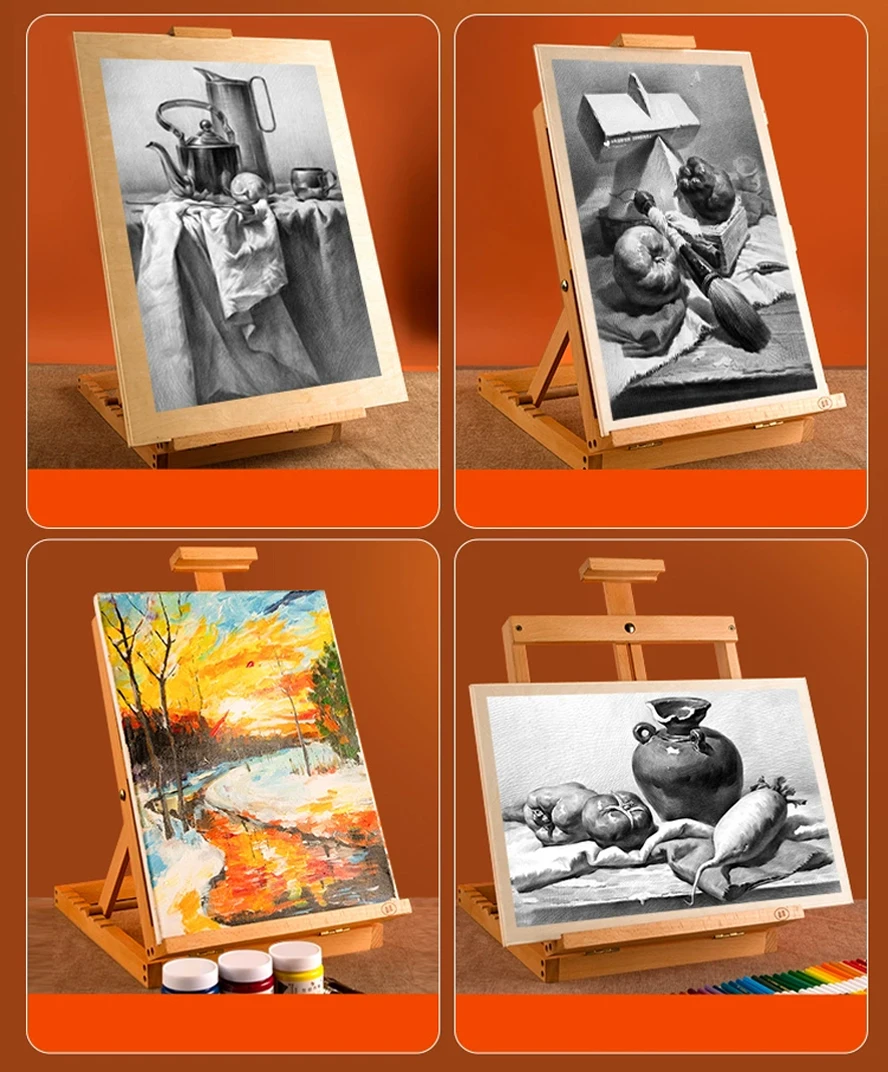 Cavalletto da tavolo pieghevole da tavolo in legno per pittura, schizzo, display da studio, set da disegno artistico per studenti e adulti