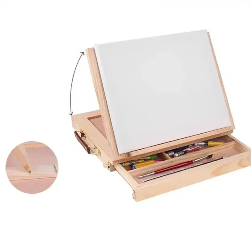 Cavalletto in legno Cavalletto per pittura Scrivania per artista Scrivania portatile in miniatura Cavalletto pieghevole Scatola da tavolo Accessori per pittura a olio Forniture artistiche