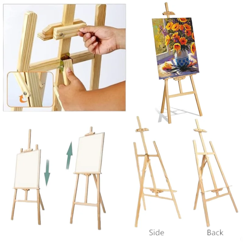 Cavalletto da artista in legno massello di pino da 150 cm – Espositore regolabile con cornice ad A