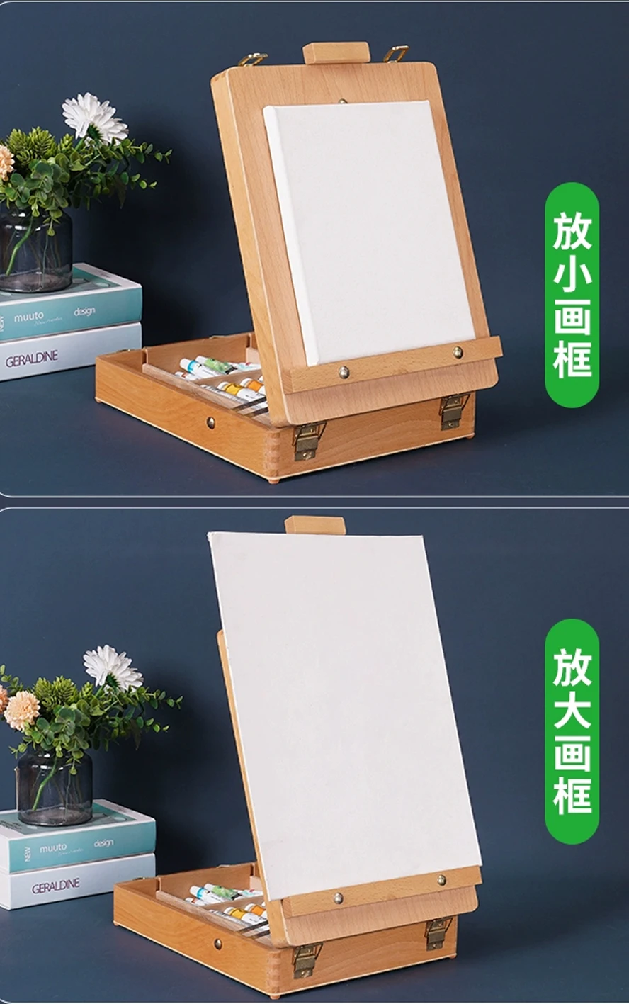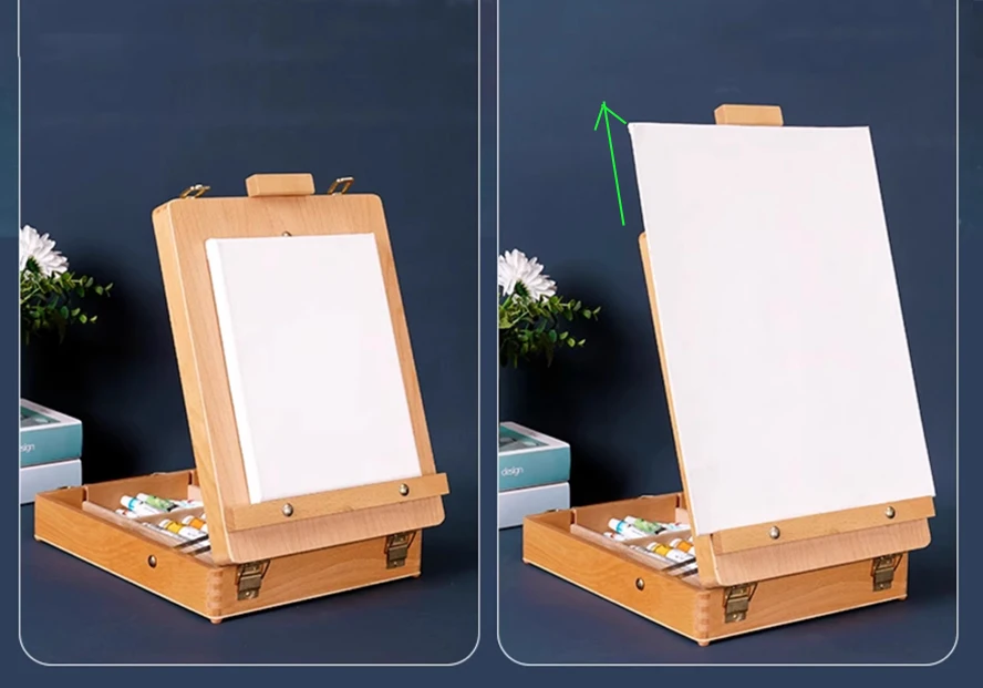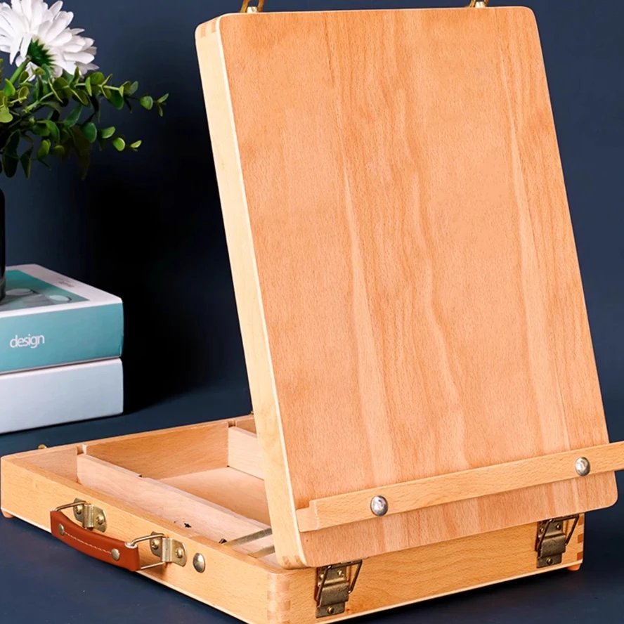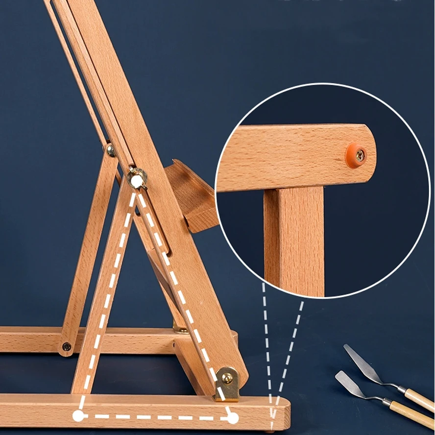 Cavalletto piatto pieghevole in faggio Supporto per pittura a olio a doppio scopo Cavalletto regolabile pieghevole Schizzo per bambini Pittura a olio Arte Desktop