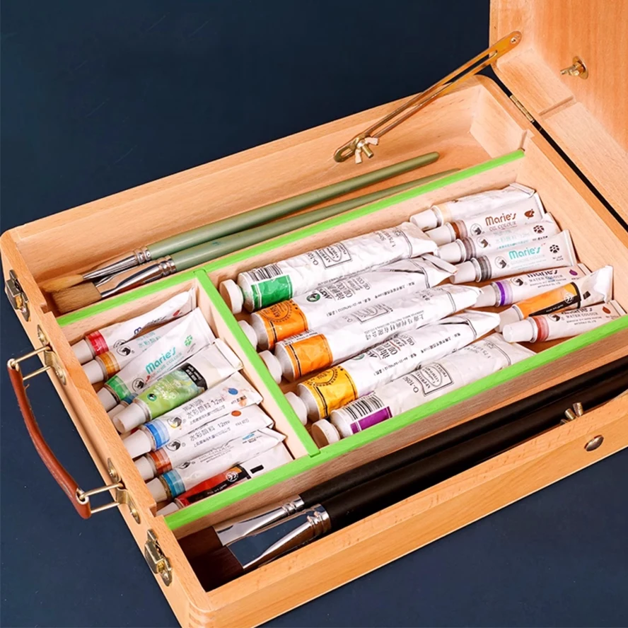 Set di pittura ad acquerello in metallo da 20 colori: scatola portatile incorporata con acquerelli solidi di perle scintillanti e materiali artistici completi