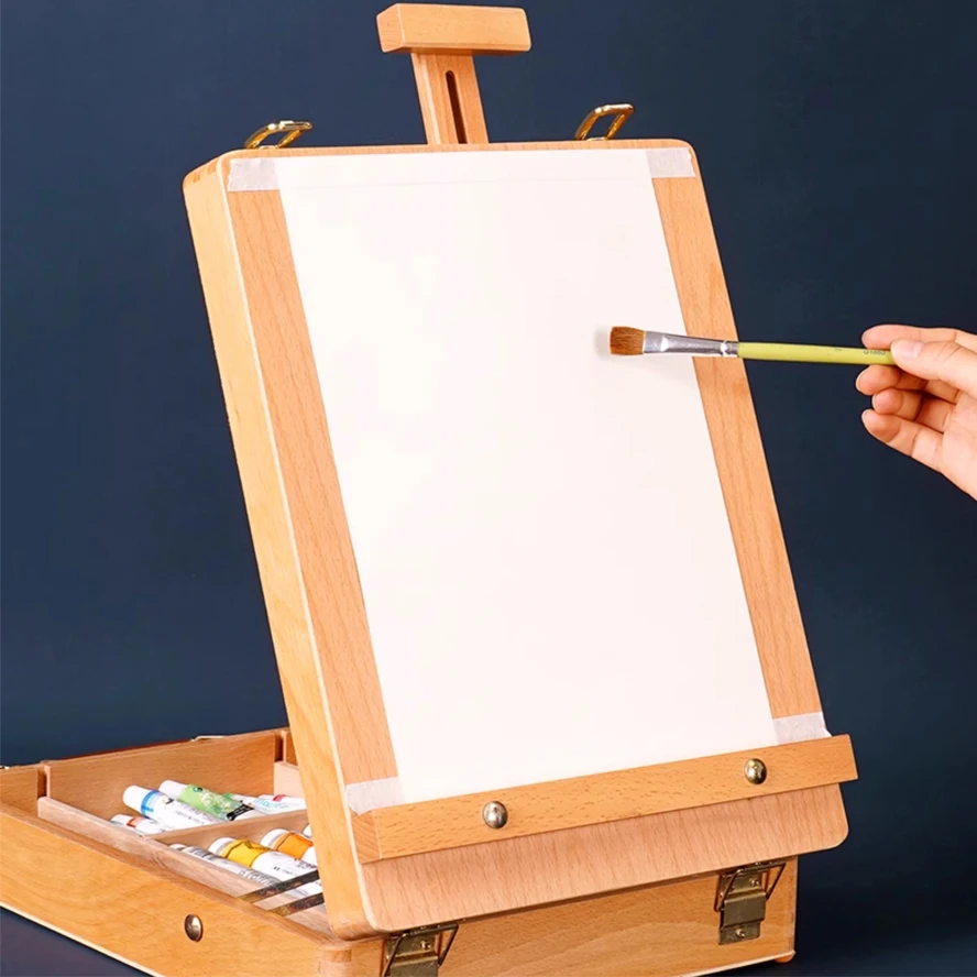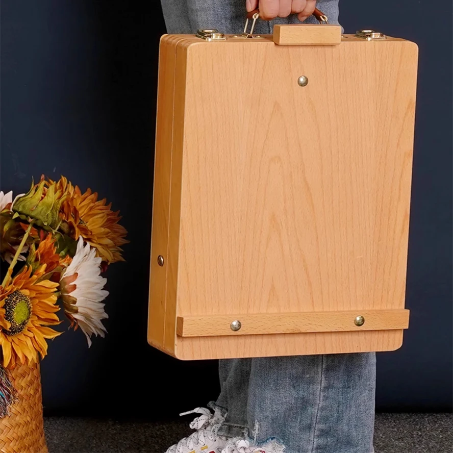 Cavalletto piatto pieghevole in faggio Supporto per pittura a olio a doppio scopo Cavalletto regolabile pieghevole Schizzo per bambini Pittura a olio Arte Desktop
