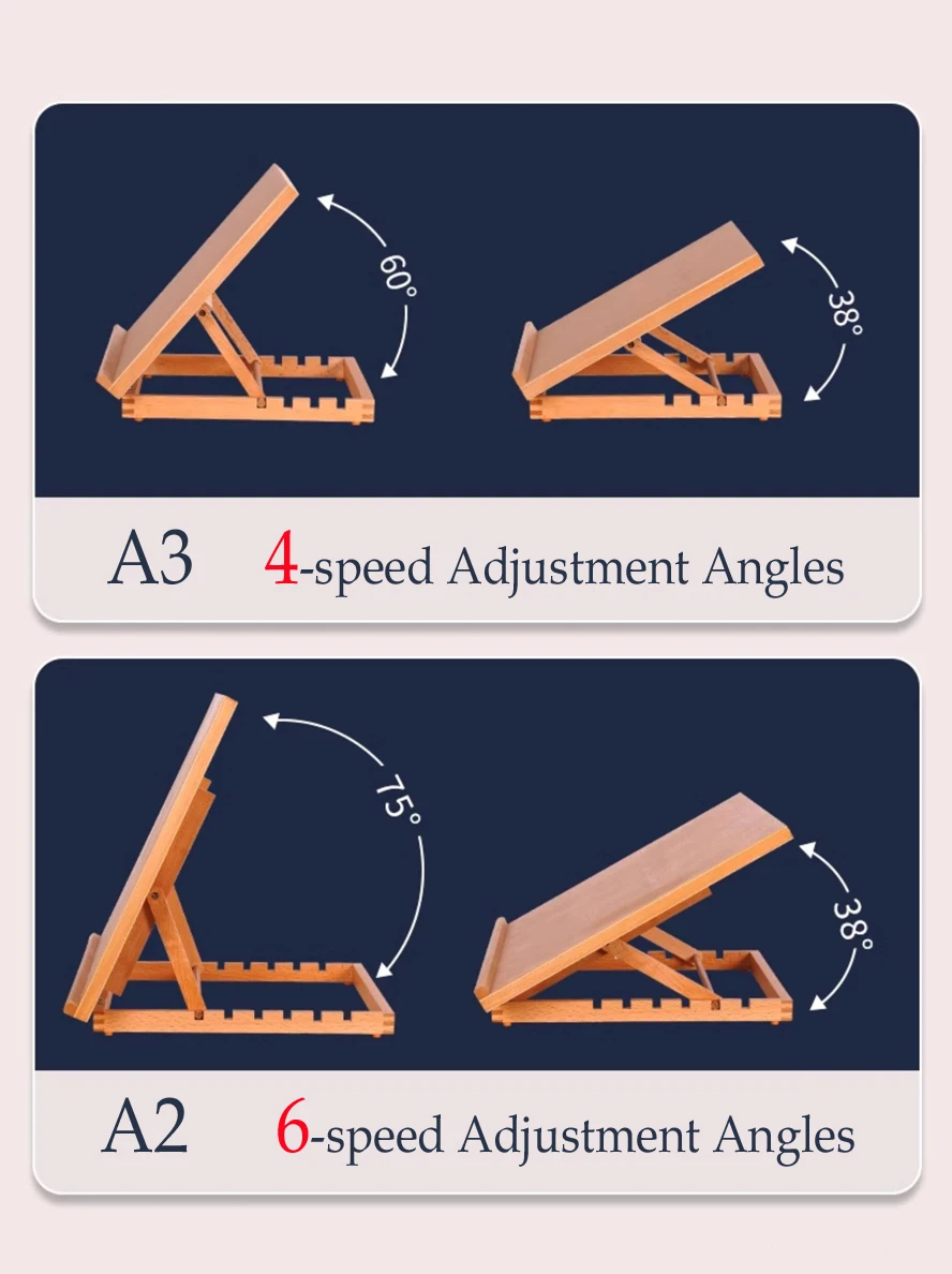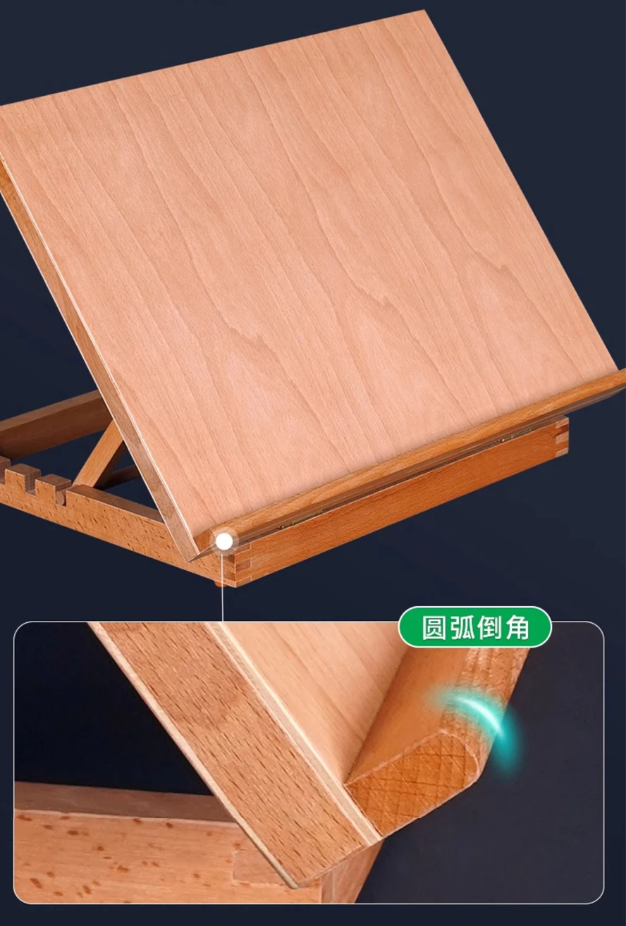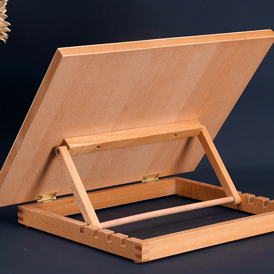 Cavalletto piatto pieghevole in faggio Supporto per pittura a olio a doppio scopo Cavalletto regolabile pieghevole Schizzo Pittura a olio Destop Art Box portatile