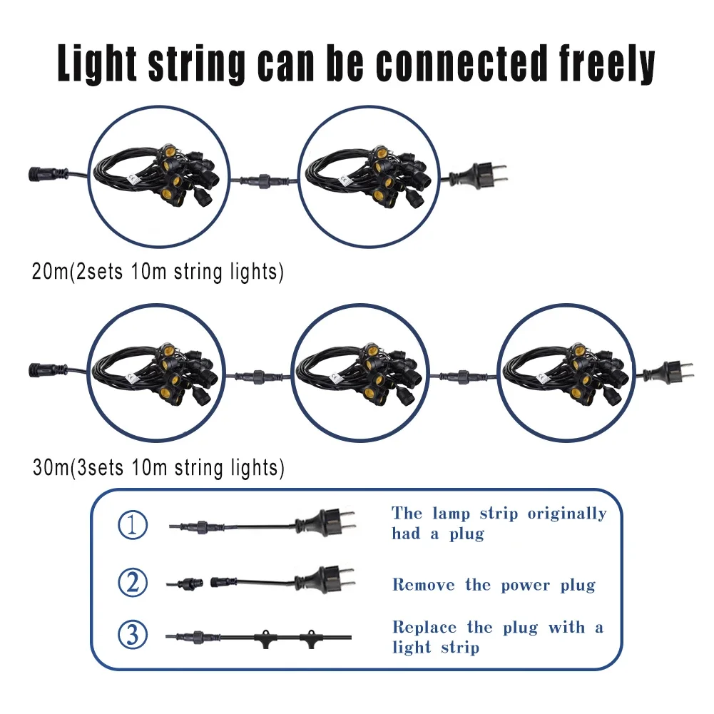 Cavo per luce esterna pesante da 10/20/30 m E27 di grado commerciale impermeabile per cavo di filo per festone da giardino per feste fai da te