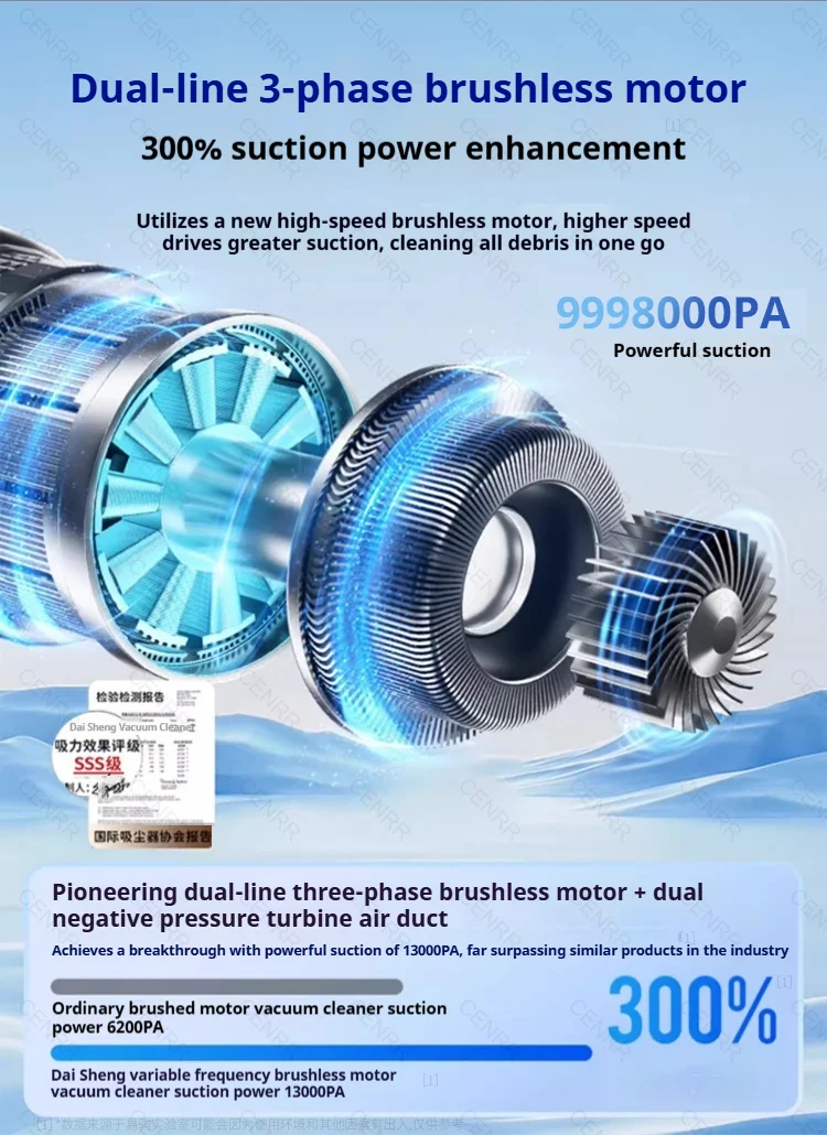 CENRR 9998000 Aspirapolvere per auto PA Forte aspirazione Potente pulitore per auto portatile wireless per ventilatore d’aria per elettrodomestici