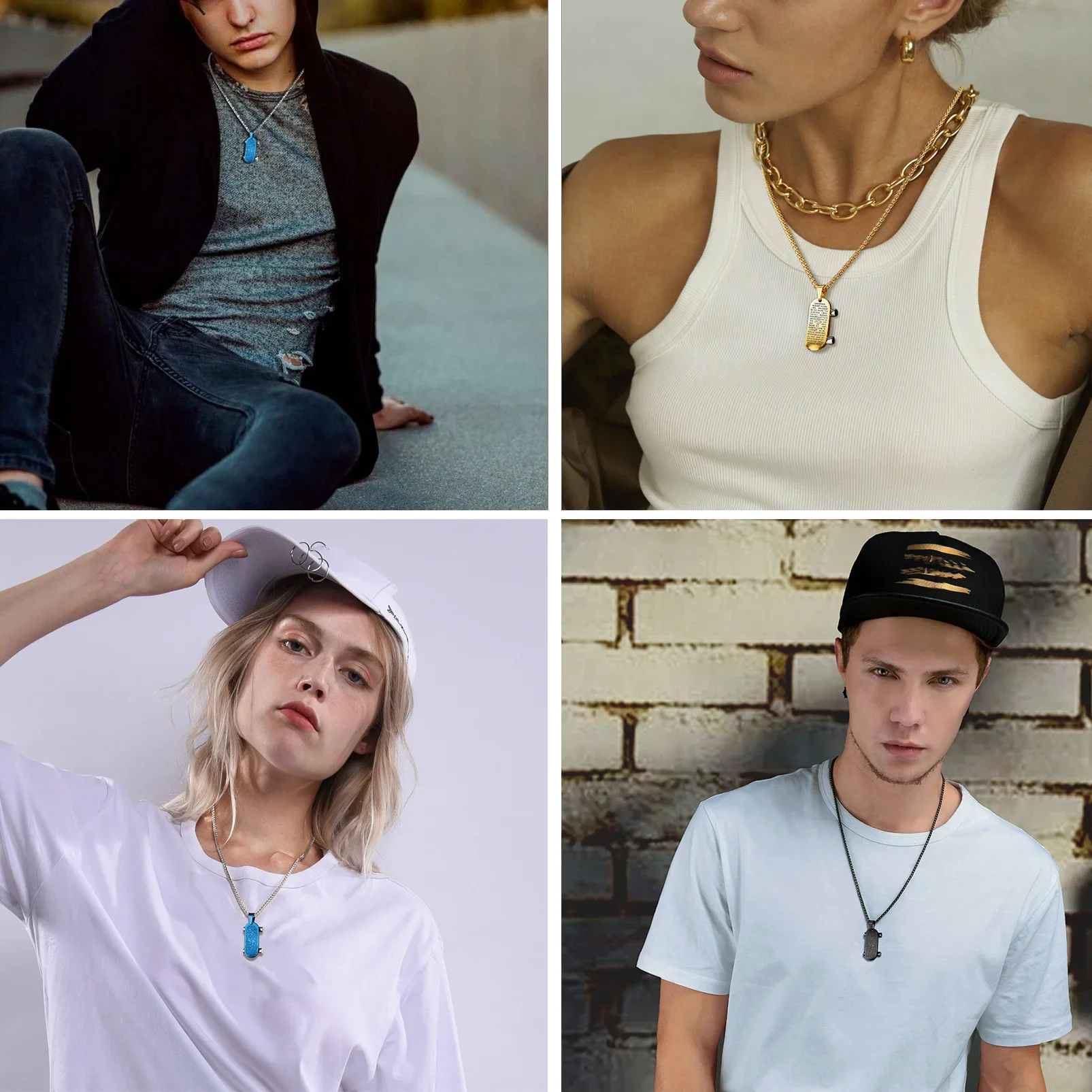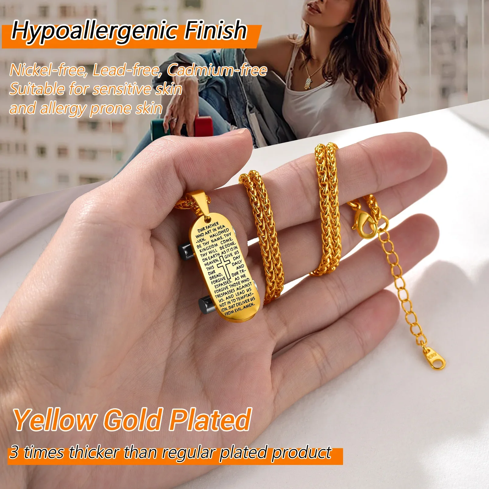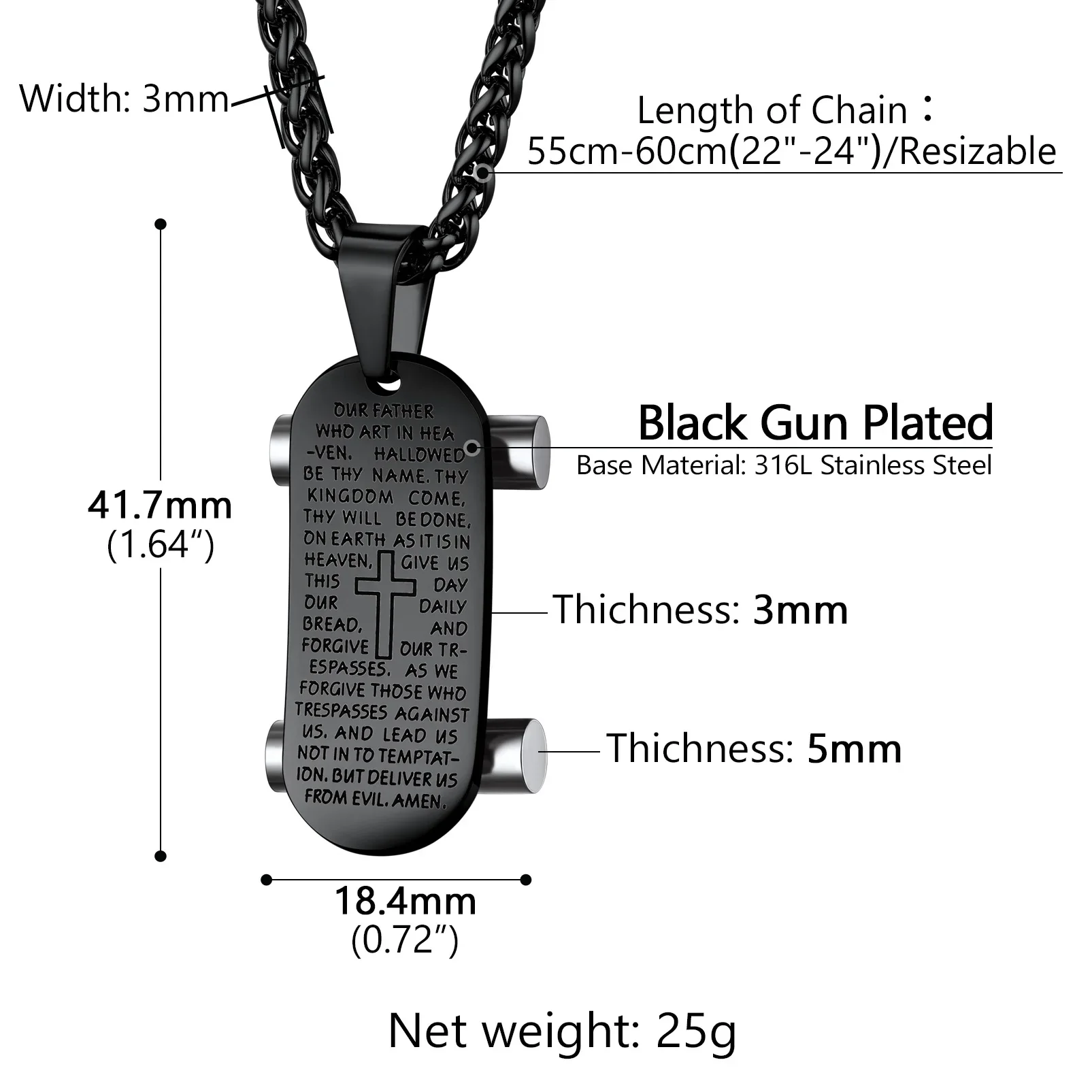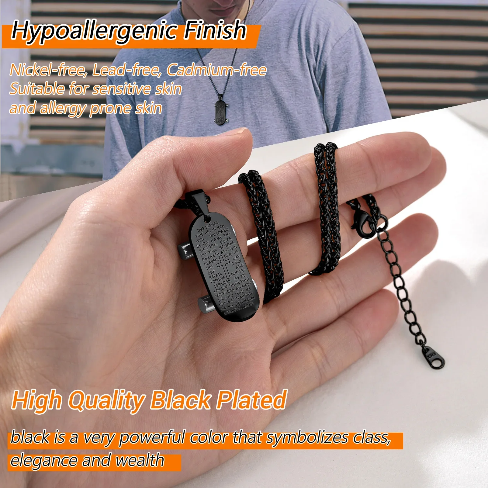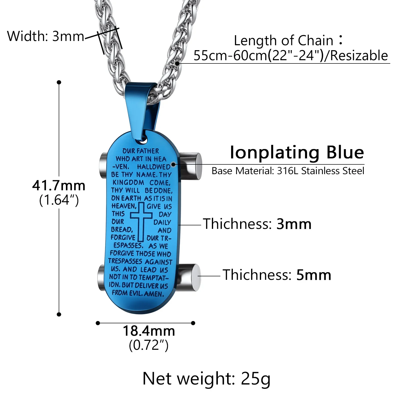 A cool skateboard biker pendant necklace: Inspiring Bible verses are engraved on the skateboard. You will be the focus when you are using it! The Christian catholic the lord’s prayer is a magical pattern. This unique cross scripture skateboard necklace can bring good luck to the wearer and make the wearer braver.