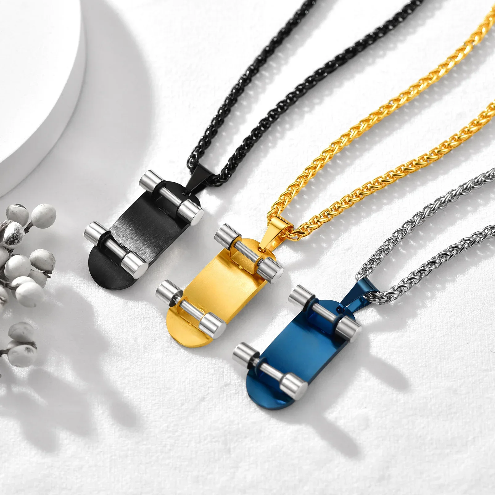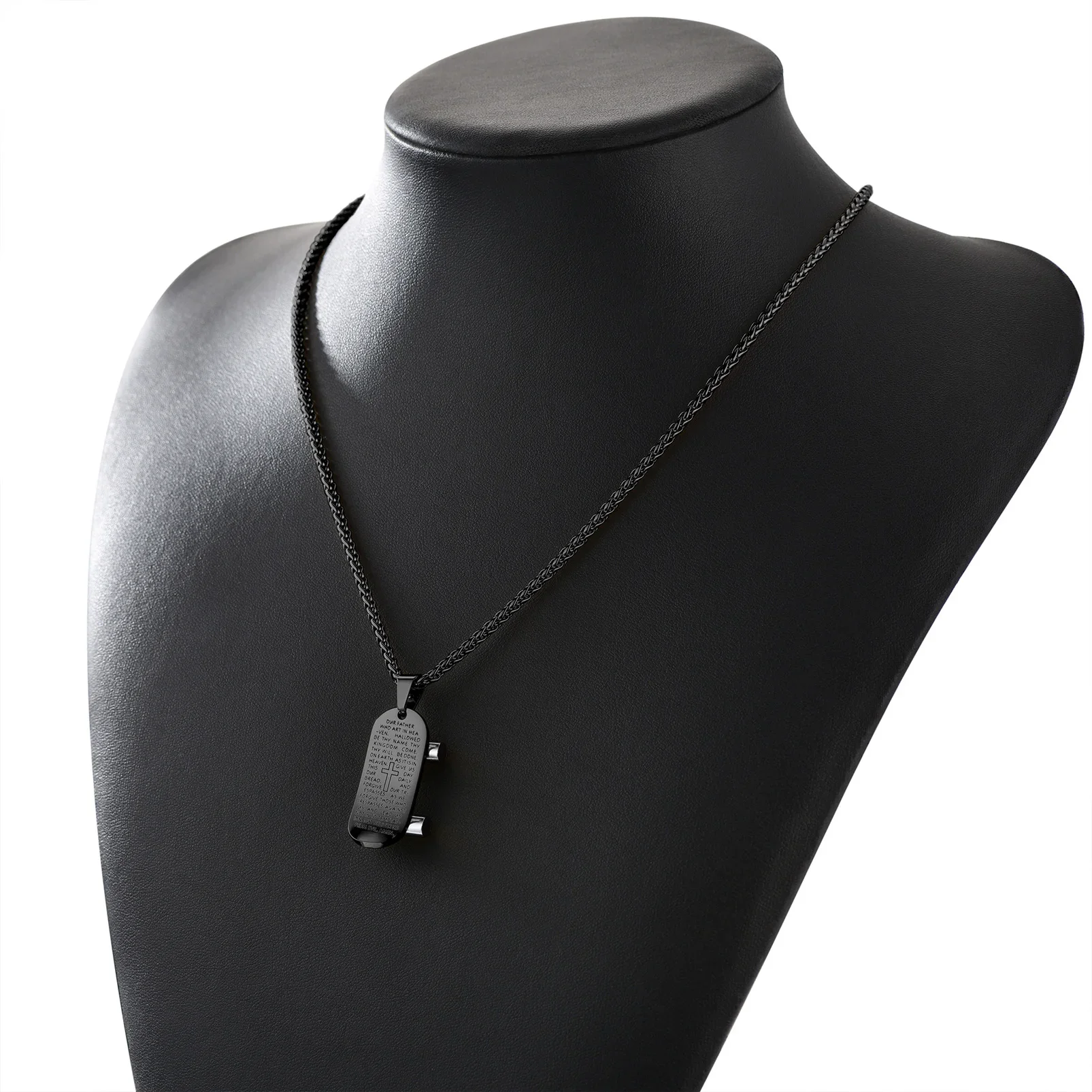 ChainsPro 3D Skateboard Necklace Black Color Deep Engraved Bible Verse Cross Decks Skateboarding Pendant with 22 inches Rope Chain Unisex Jewelry Gift