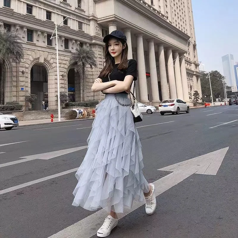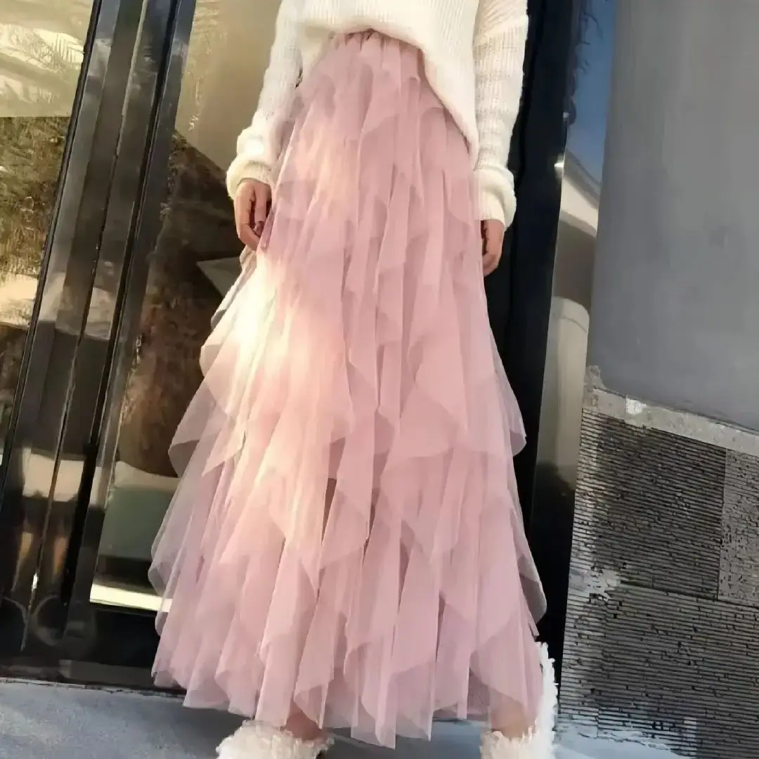 Chamliforve Gonna a rete in tulle da donna Elegante gonna a tutù lunga a trapezio con elastico in vita per gonna lunga primavera estate