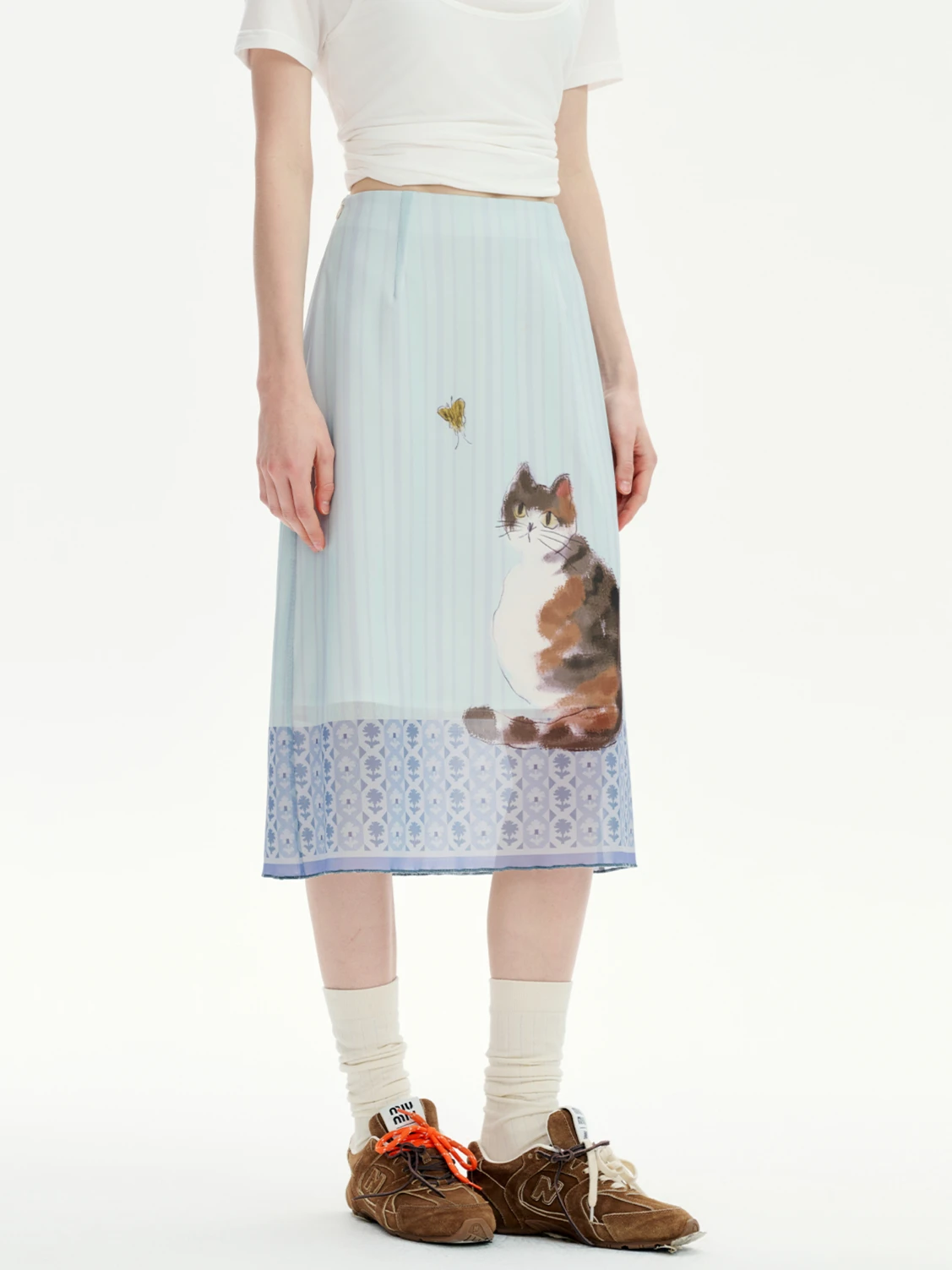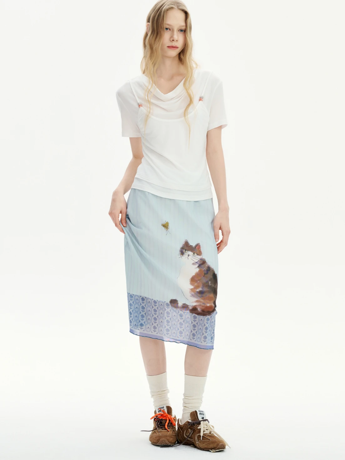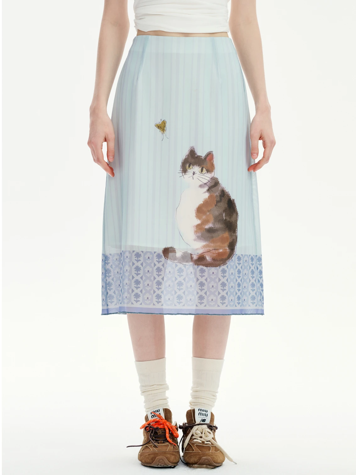 CHEERART Designer Summer 2025 Gonne per gatti per donna Vita media Blu Una linea al ginocchio Gonna a rete Abiti di moda
