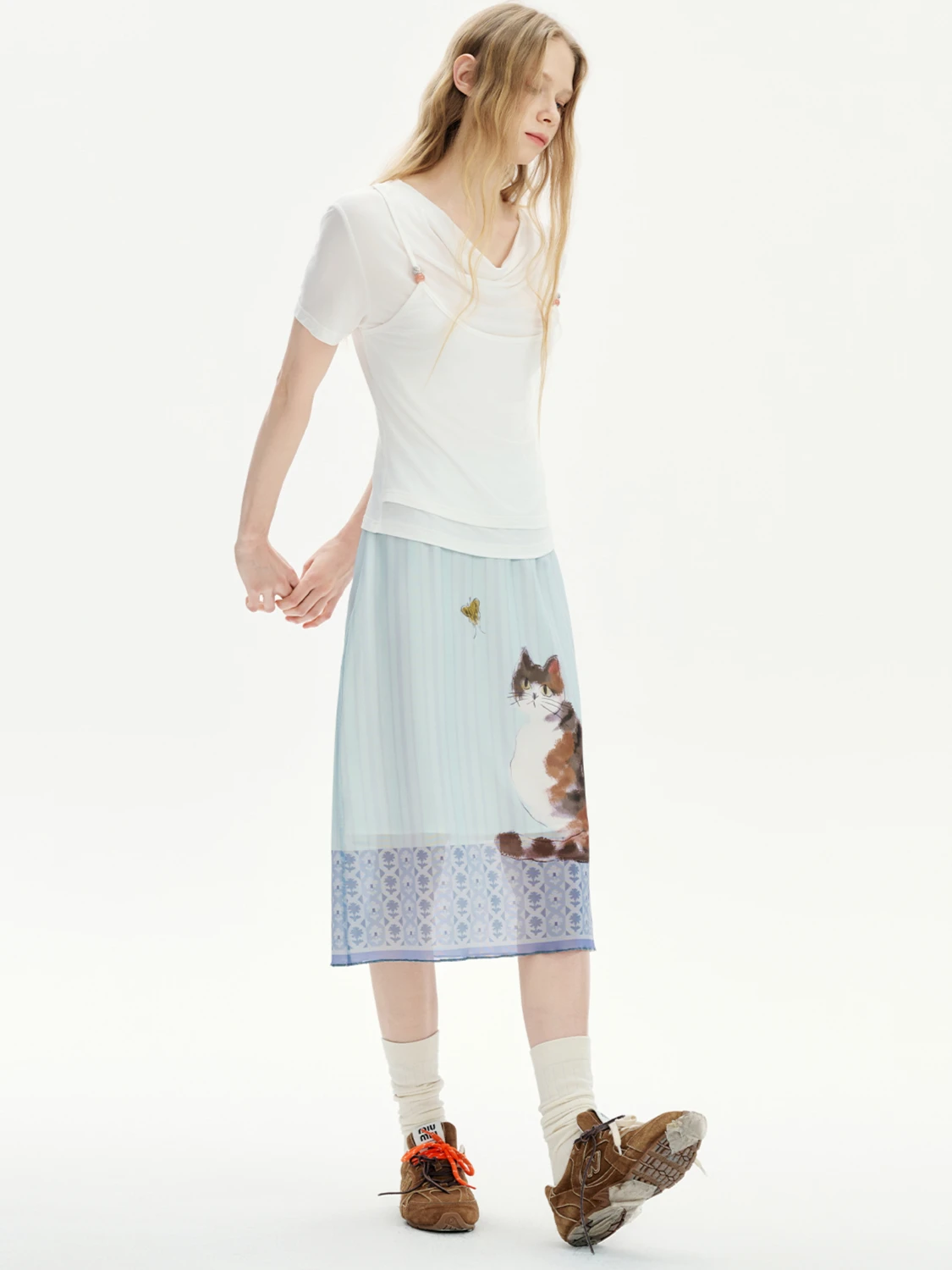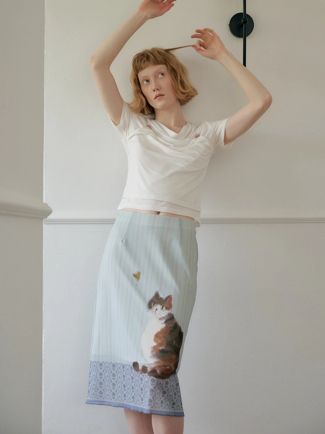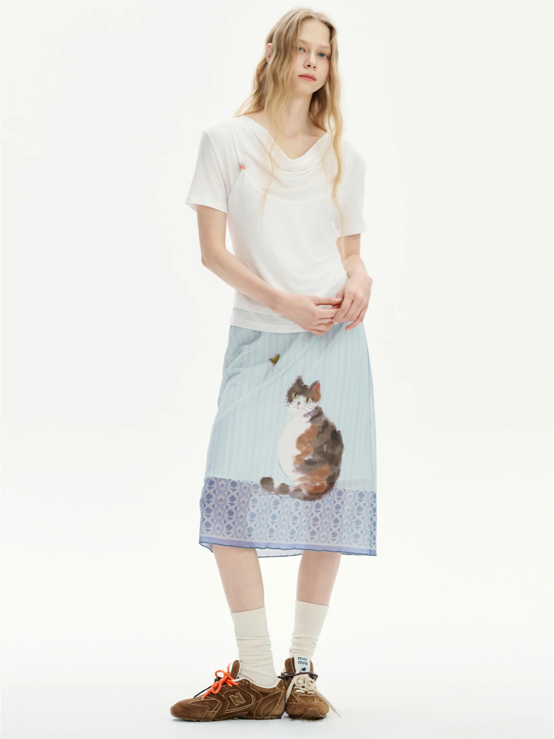 CHEERART Designer Summer 2025 Gonne per gatti per donna Vita media Blu Una linea al ginocchio Gonna a rete Abiti di moda