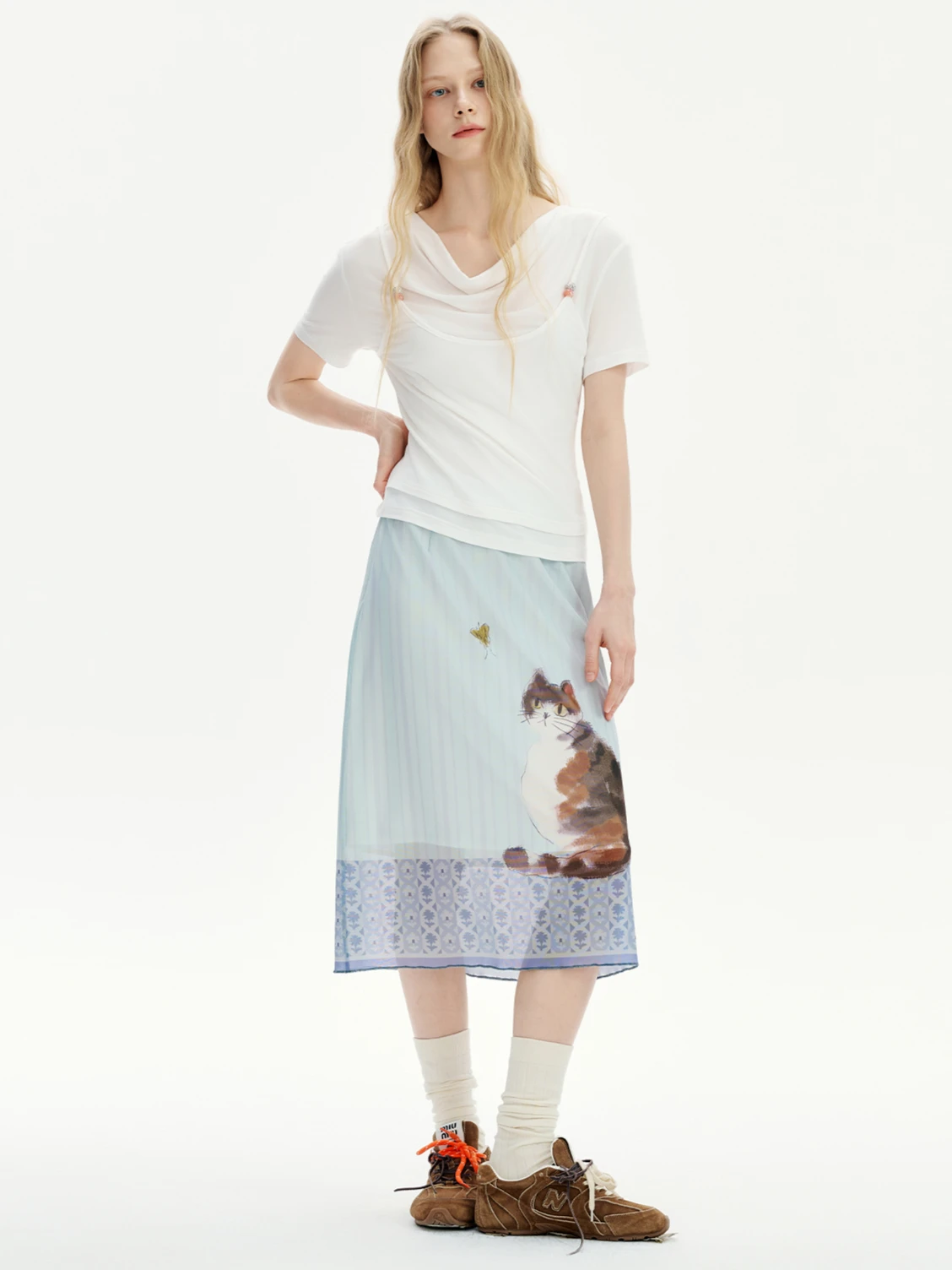 CHEERART Designer Summer 2025 Gonne per gatti per donna Vita media Blu Una linea al ginocchio Gonna a rete Abiti di moda