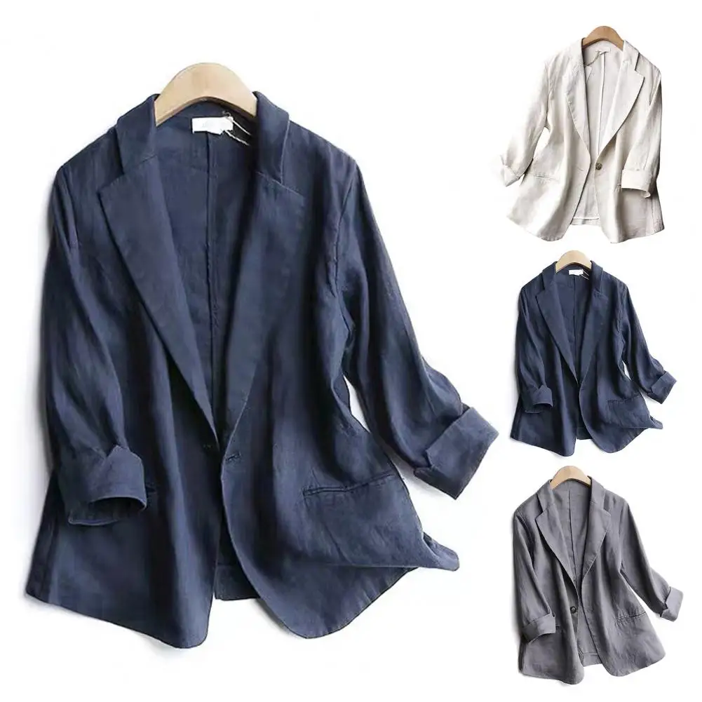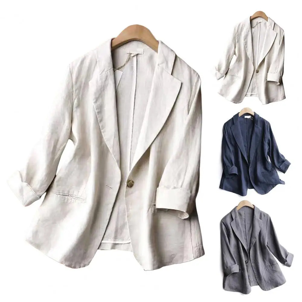 Blazer da donna chic in misto lino estivo sottile e traspirante elegante abito da donna casual moda coreana giacca di lusso cappotto da donna